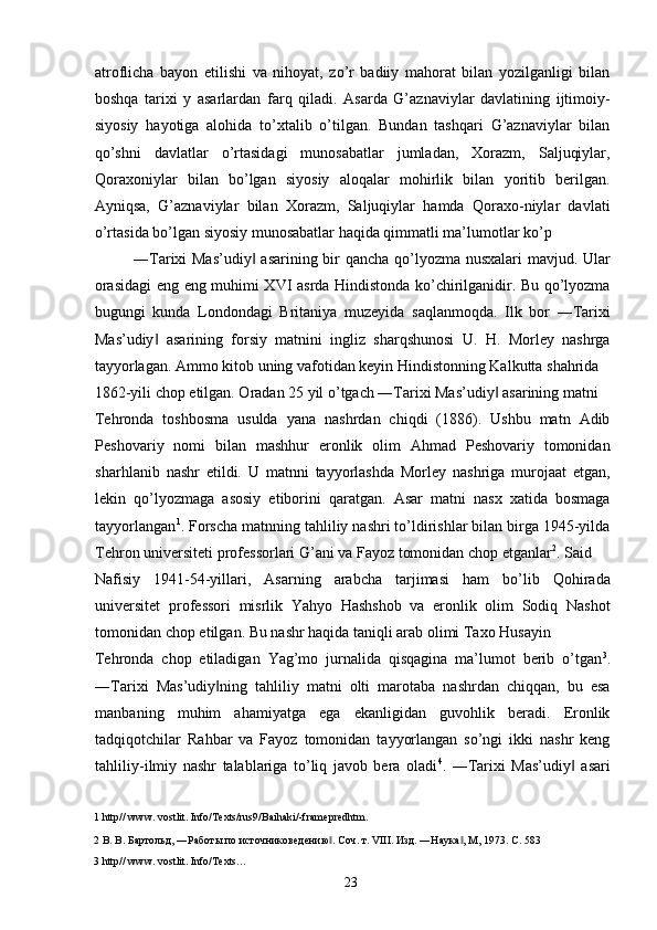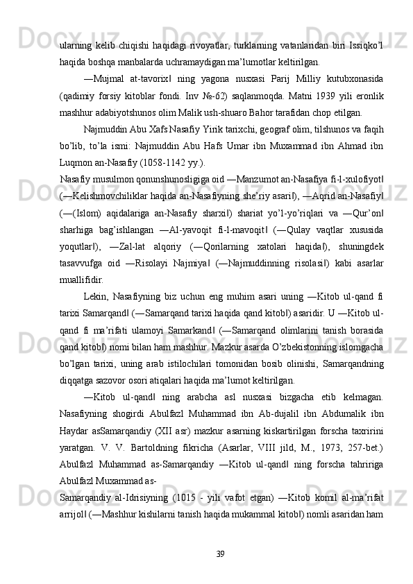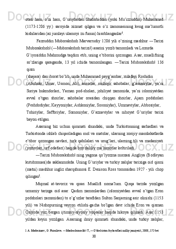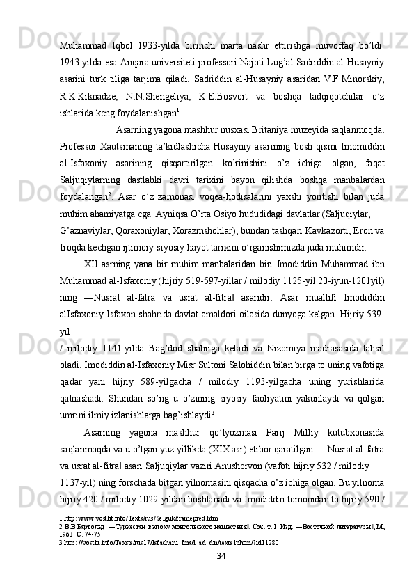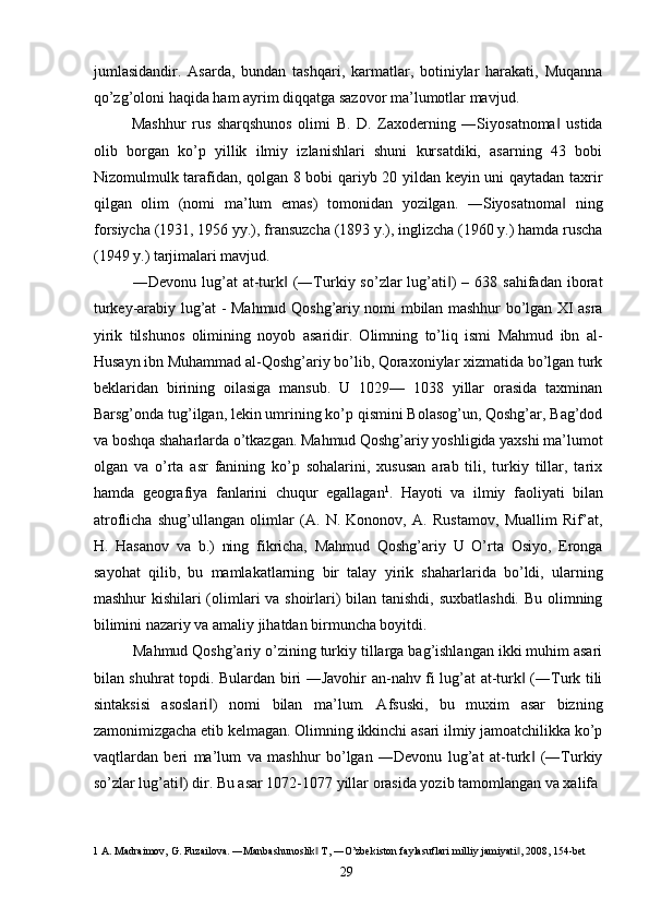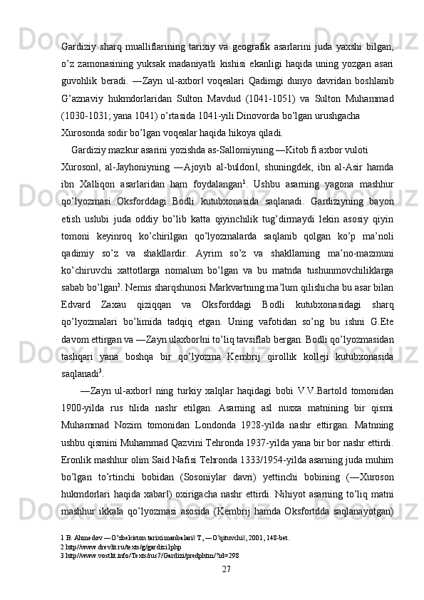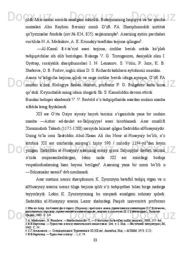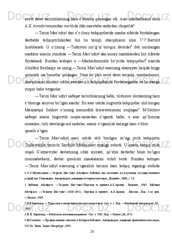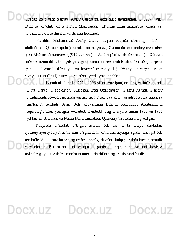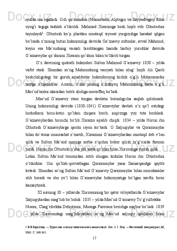XI-XII ASRLARDA O’RTA OSIYO SIYOSIY HAYOTI TARIXINING TARIXSHUNOSLIGI