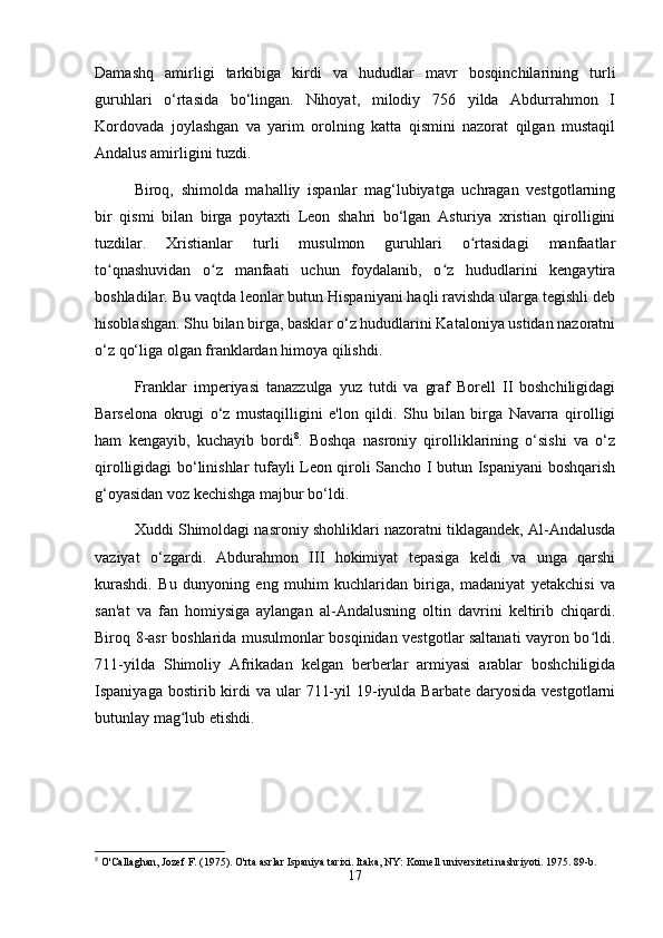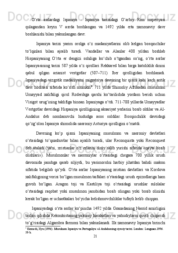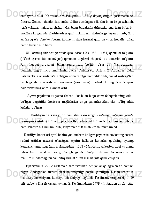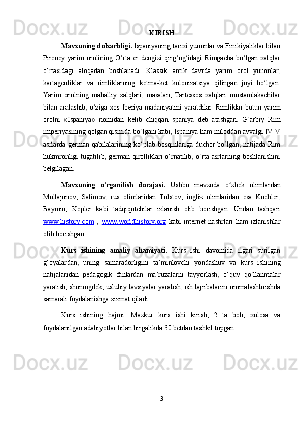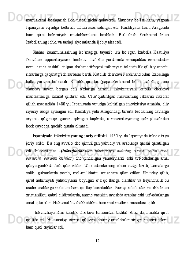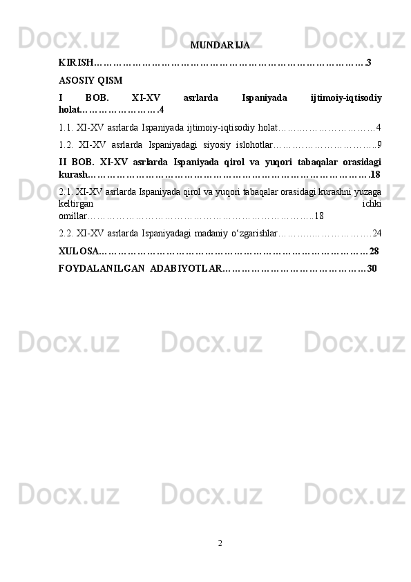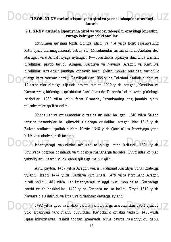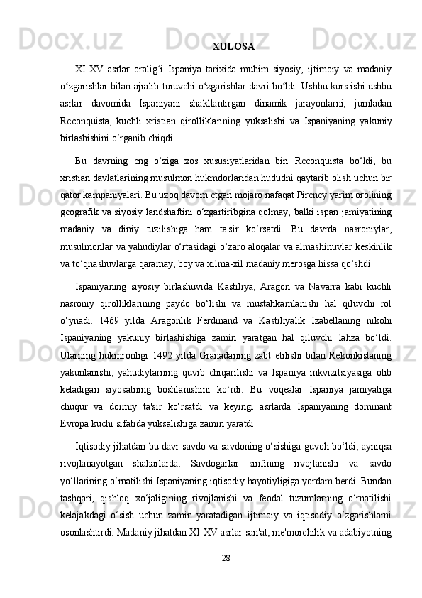 XI-XV asrlarda Ispaniya mavzusida tayyor kurs ishi