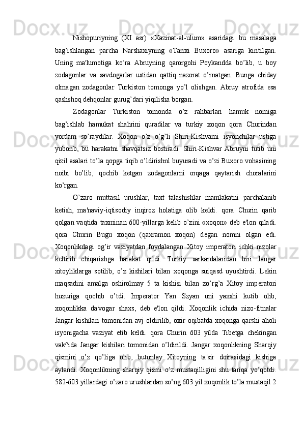 Xitoy Salnomalari qadimgi Turkiy manbalar