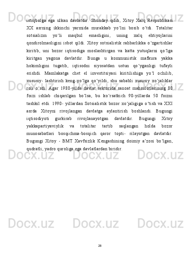 Xitoy XX asr oxiri - XXI asr boshlarida