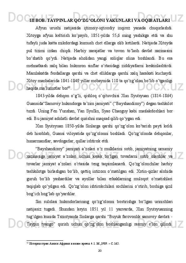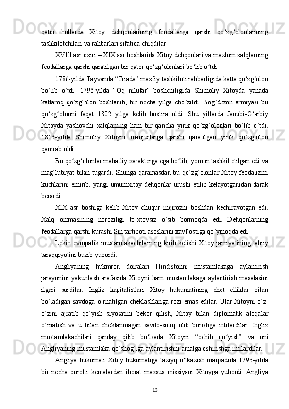 Xitoydagi Taypinlar qoʻzg'oloni tarixi