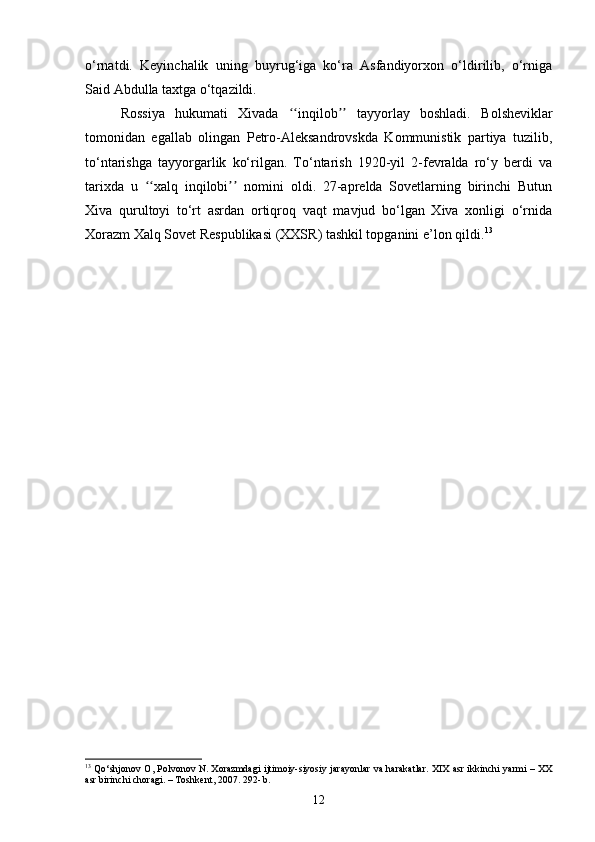 XIVA XONLIGI VA BUXORO AMIRLIGINING QIZIL ARMIYA TOMONIDAN TUGATILISHI, XXSR VA BXSRNING TASHKIL TOPISHI