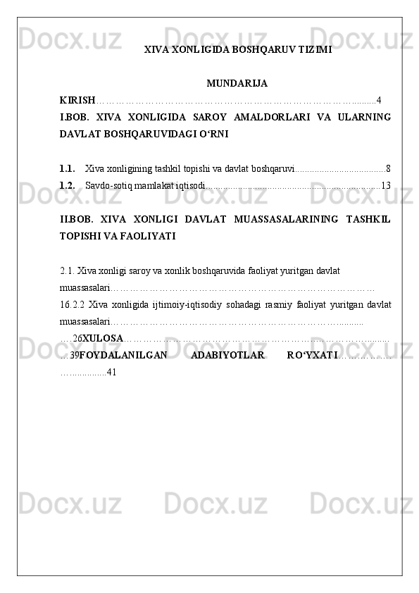 XIVA XONLIGIDA BOSHQARUV TIZIMI