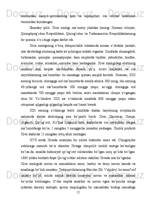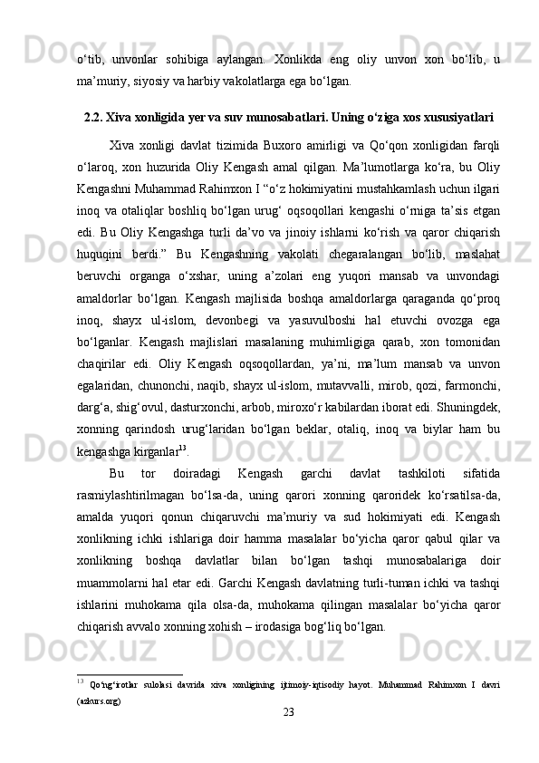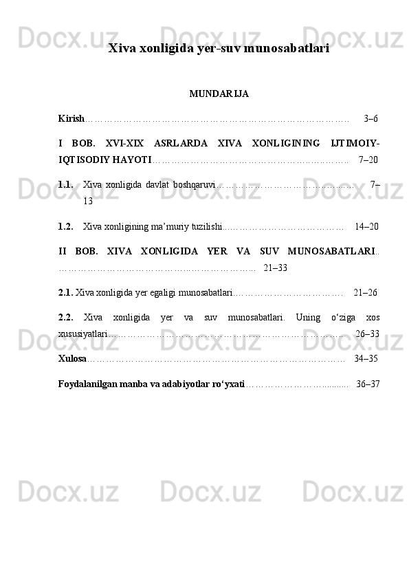 Xiva xonligida yer-suv munosabatlari