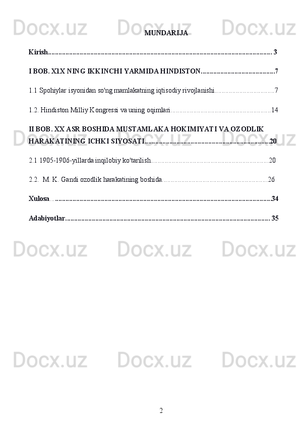 I BOB. X1X NING IKKINCHI YARMIDA HINDISTON..........................................7