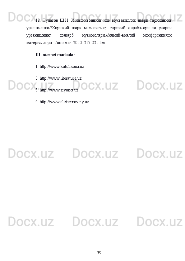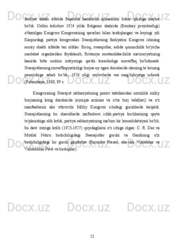 II BOB. XX ASR BOSHIDA MUSTAMLAKA HOKIMIYATI VA OZODLIK HARAKATINING ICHKI SIYOSATI.......................................................................20