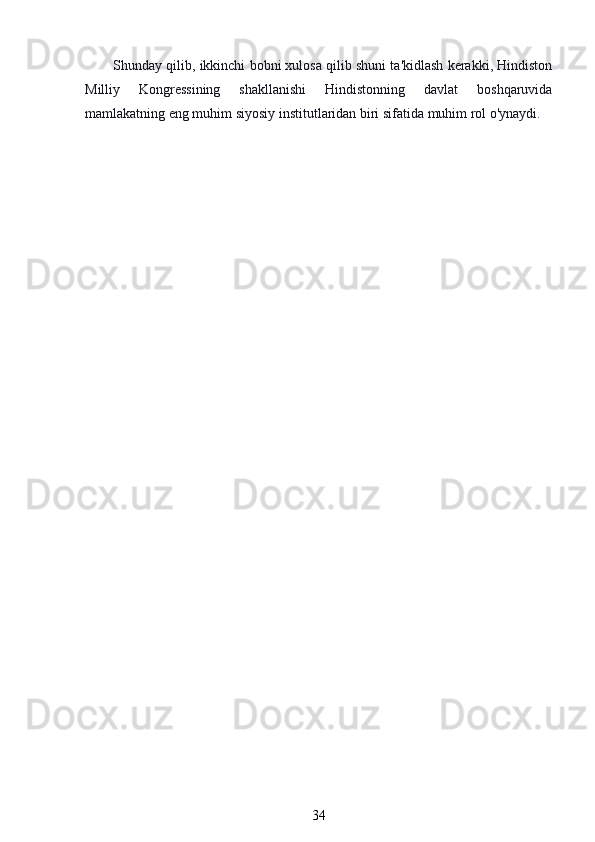 1.2. Hindiston Milliy Kongressi va uning oqimlari.........................................................14