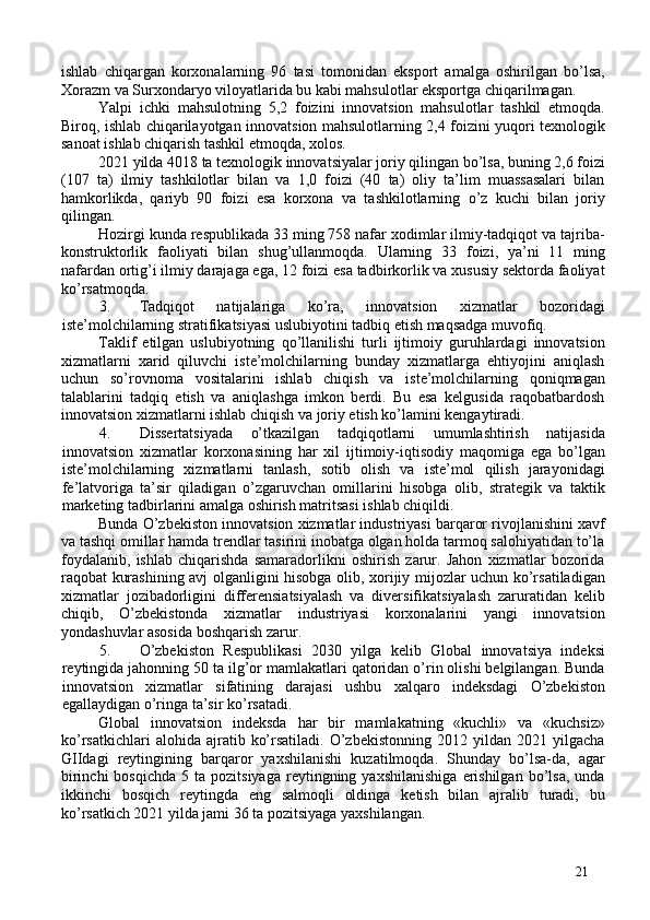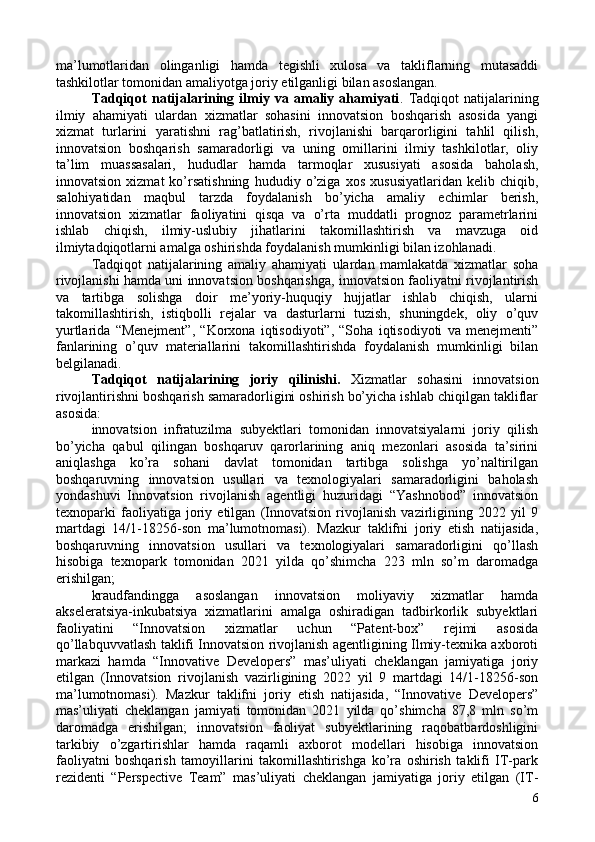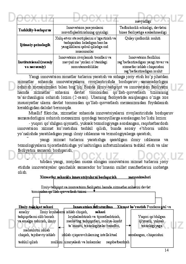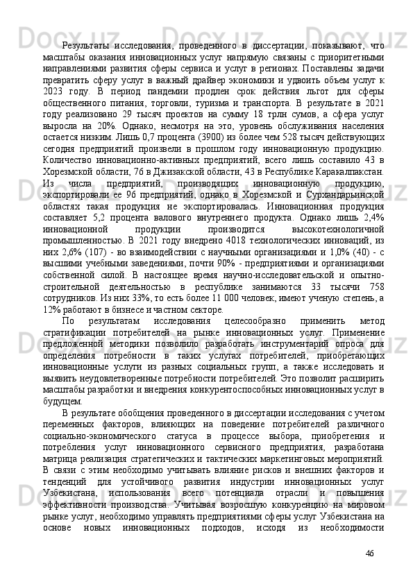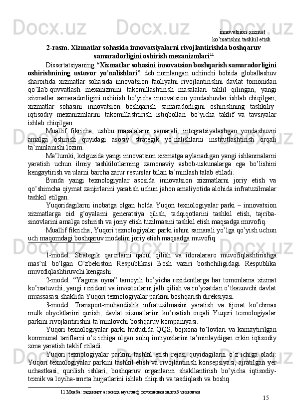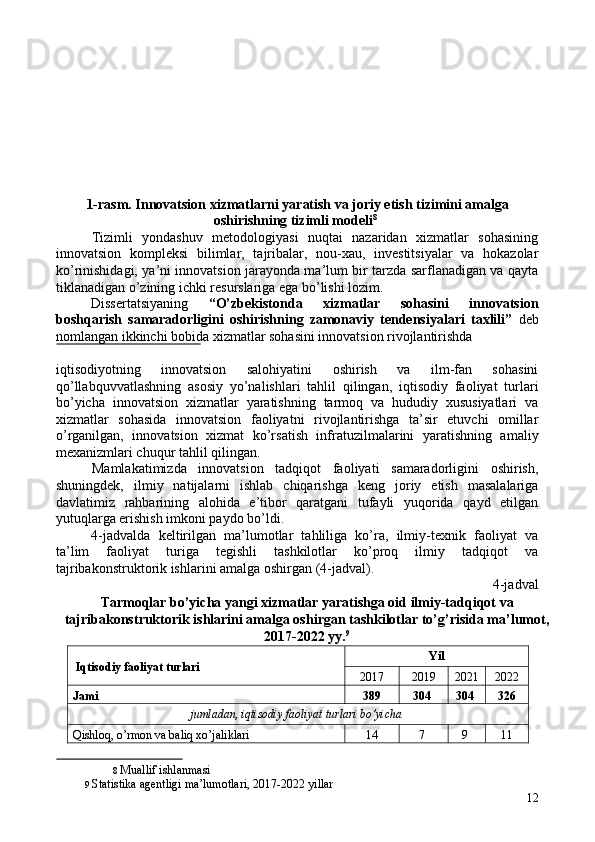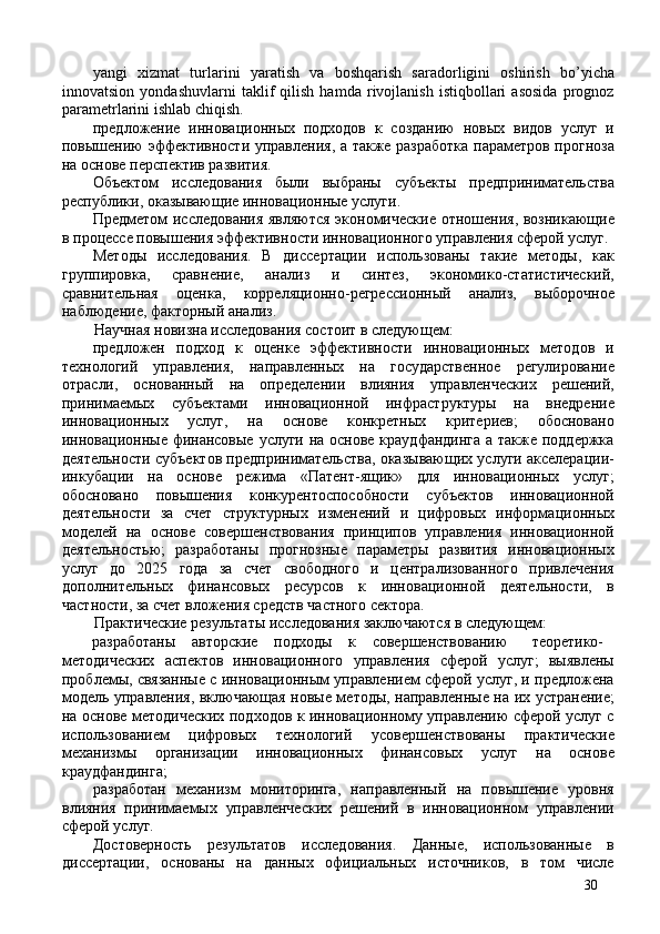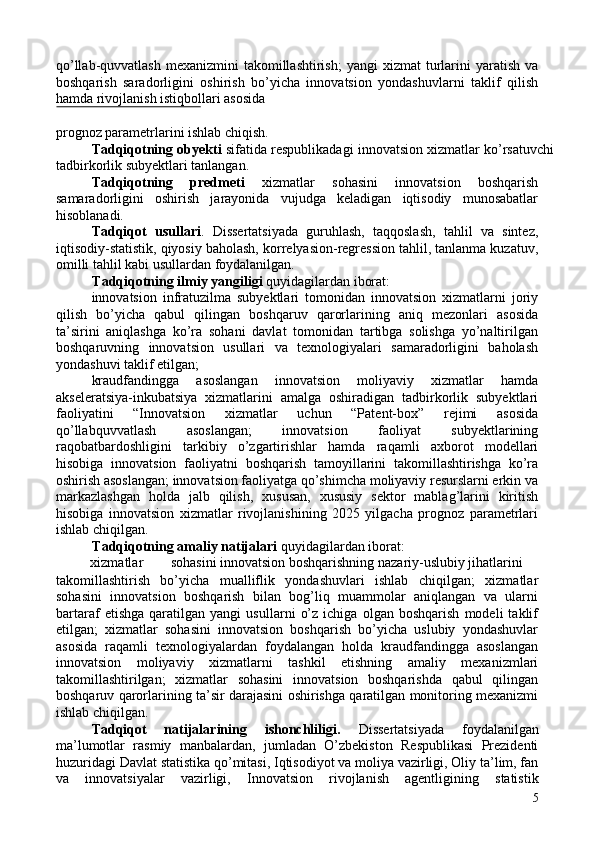 Xizmatlar sohasini innovatsion boshqarish samaradorligini oshirish