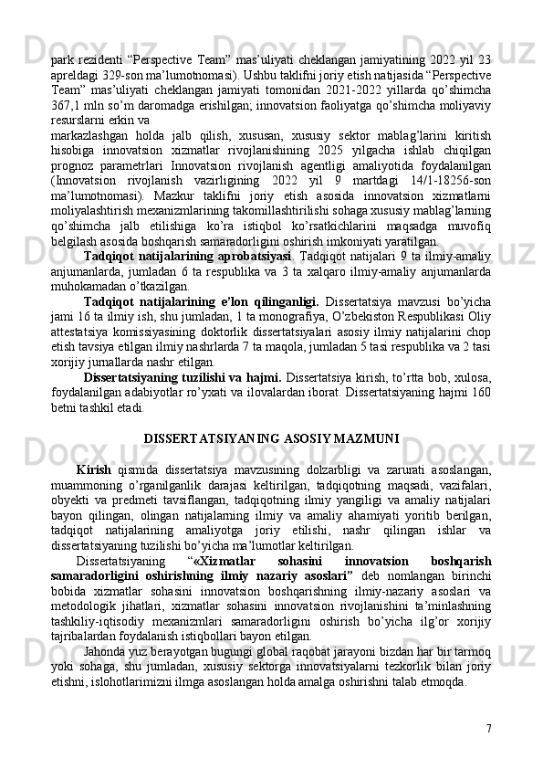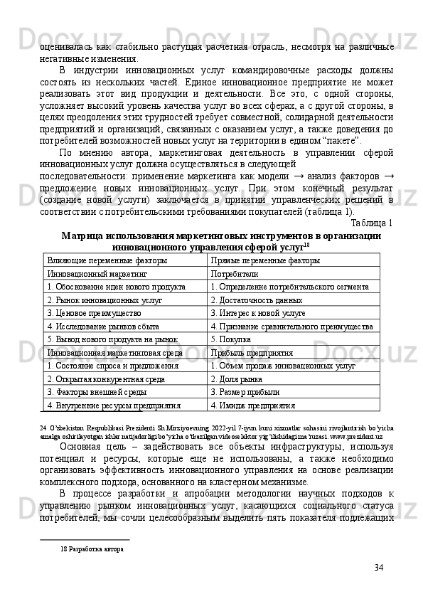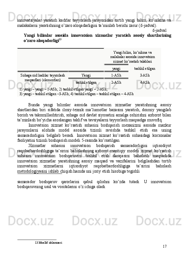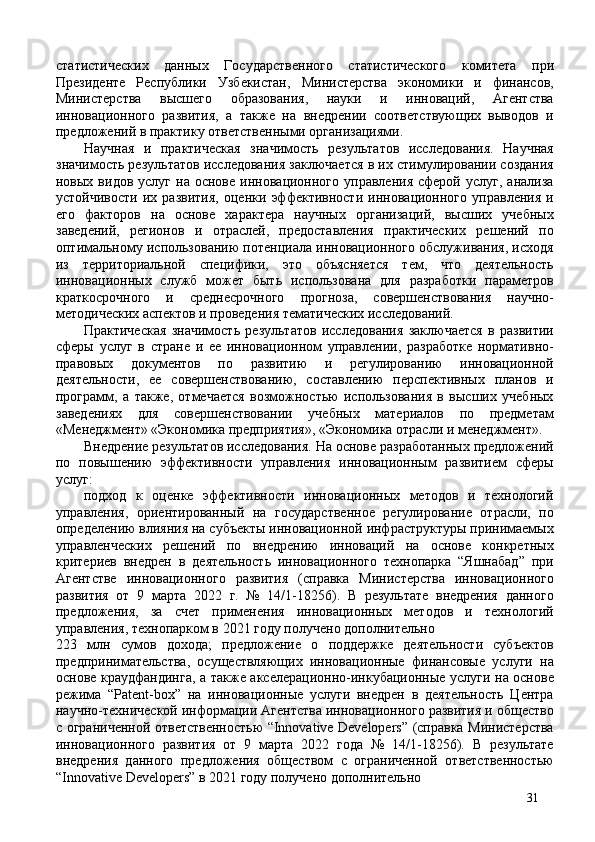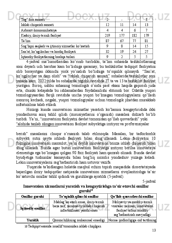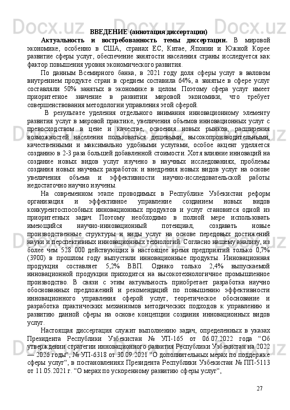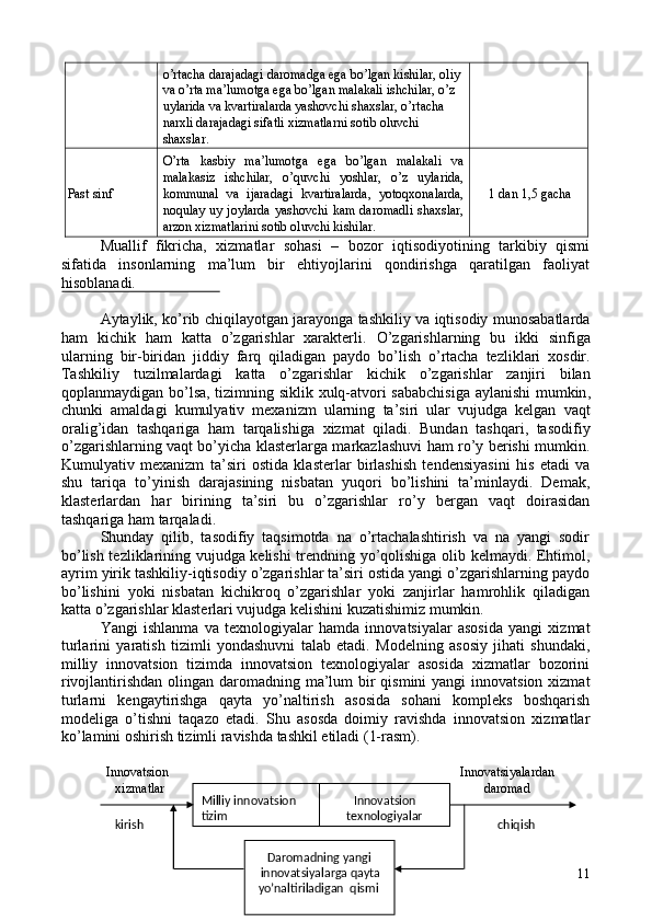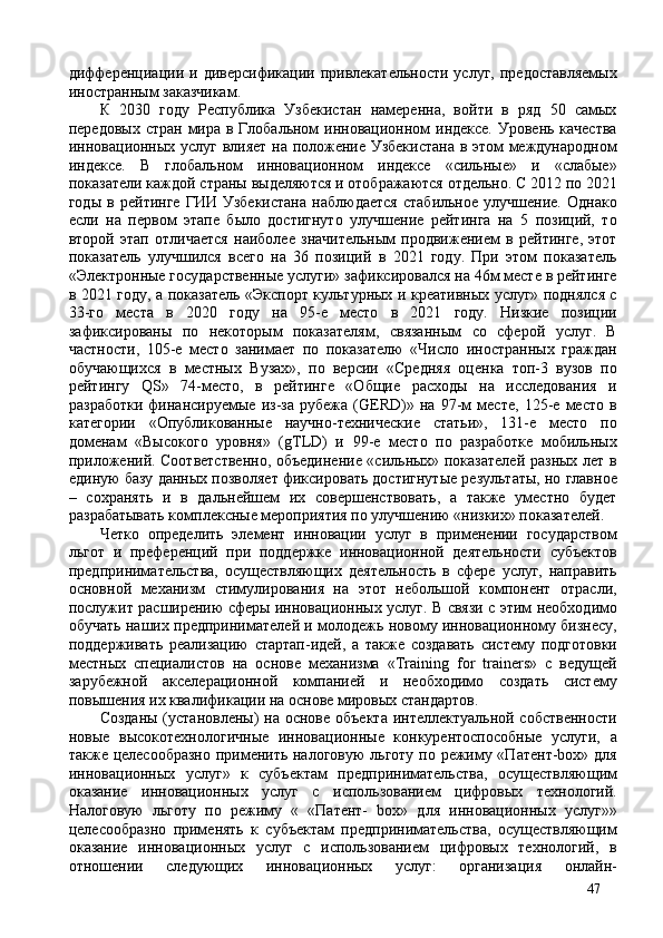 Xizmatlar sohasini innovatsion boshqarish samaradorligini oshirish