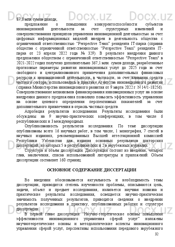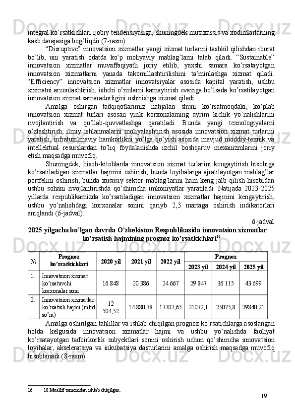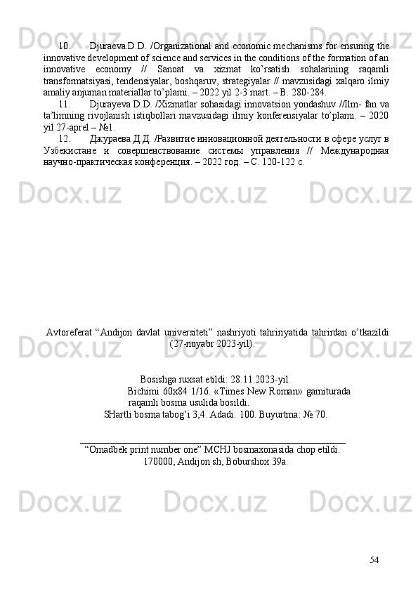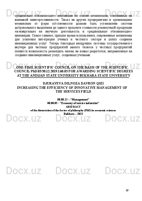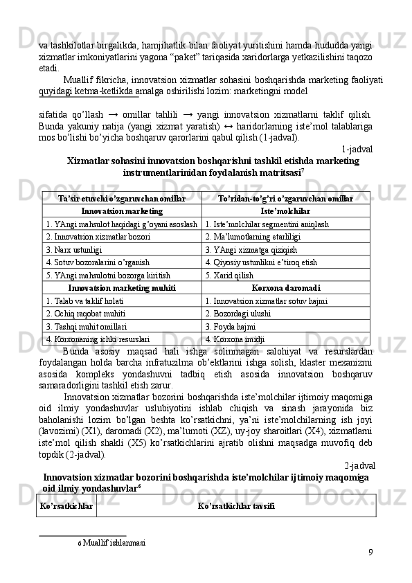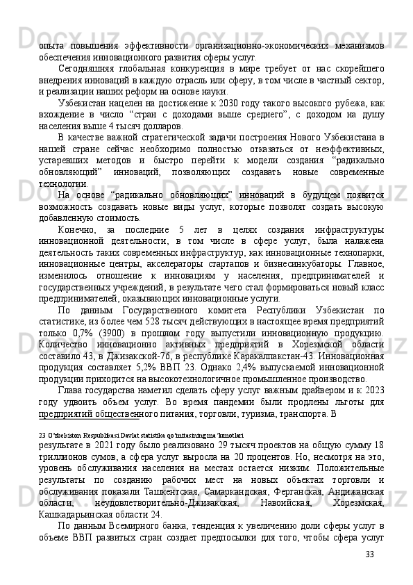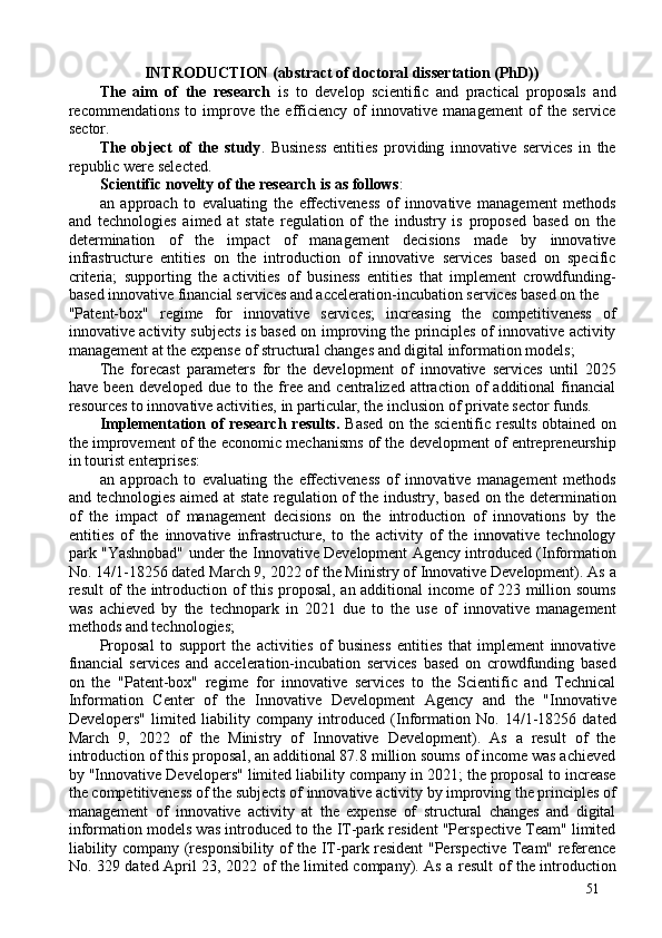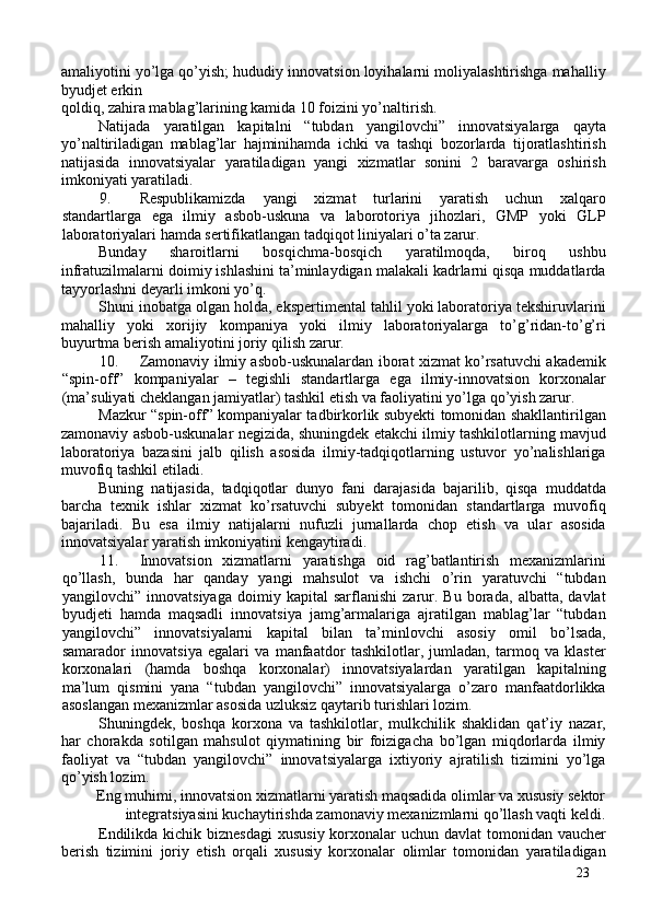 Xizmatlar sohasini innovatsion boshqarish samaradorligini oshirish