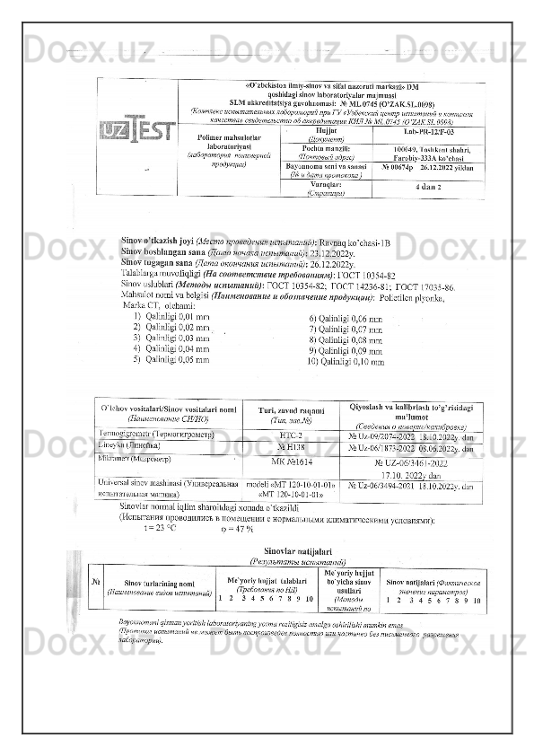 Xo’jalik elektro texnika buyumlarini sertifikatlashtirish sinovlarini o’tkazish