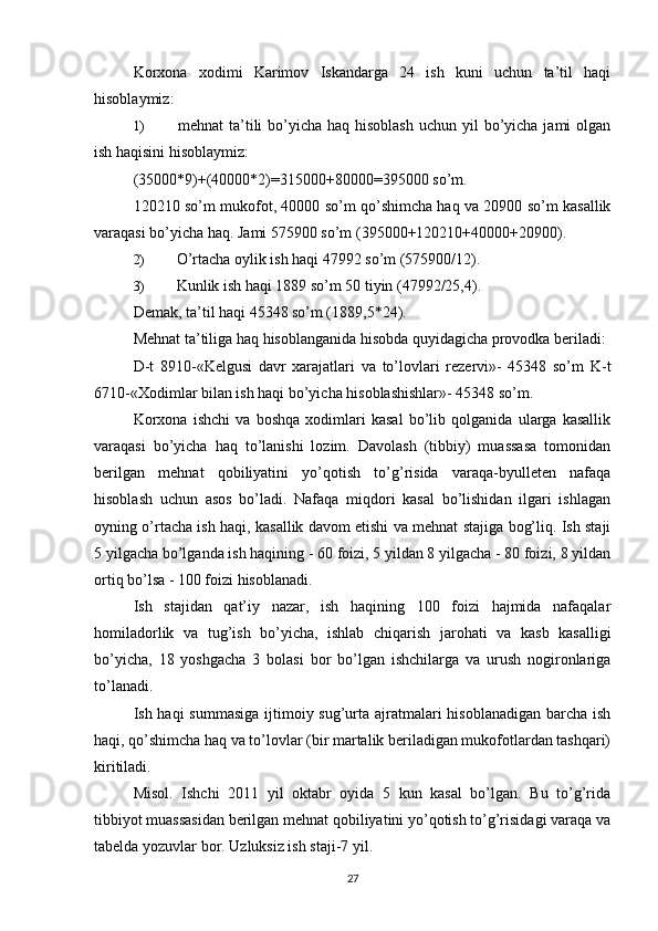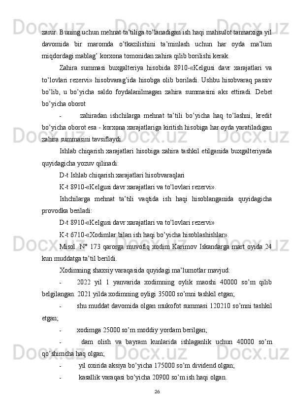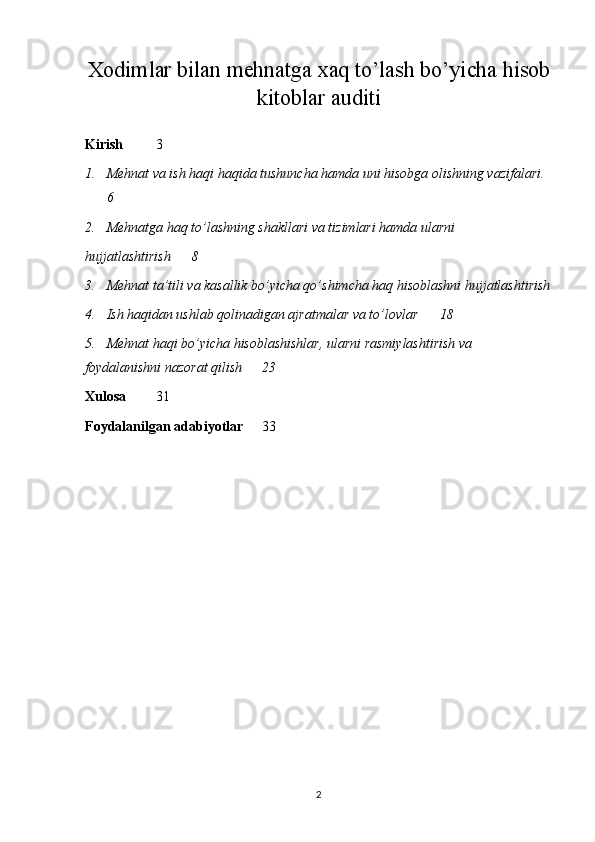 Xodimlar bilan mehnatga xaq to’lash bo’yicha hisob kitoblar auditi