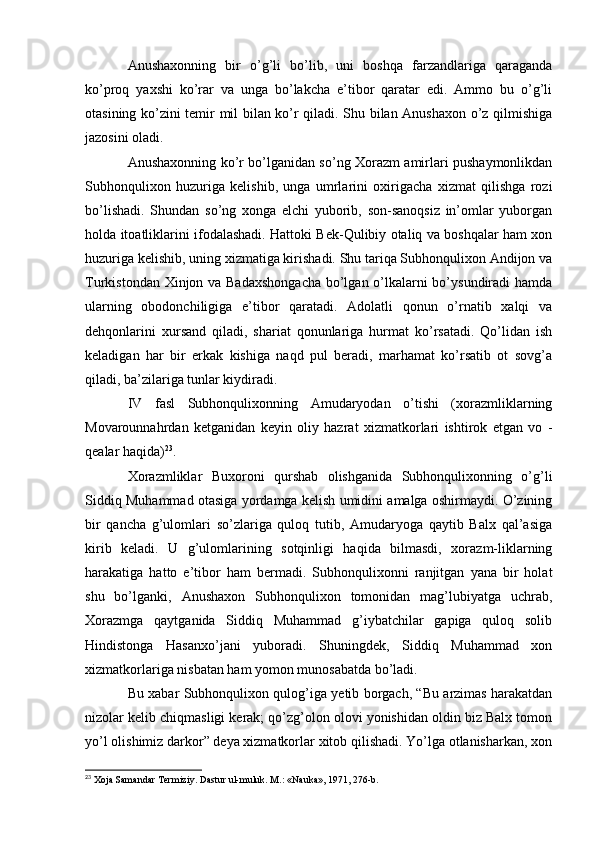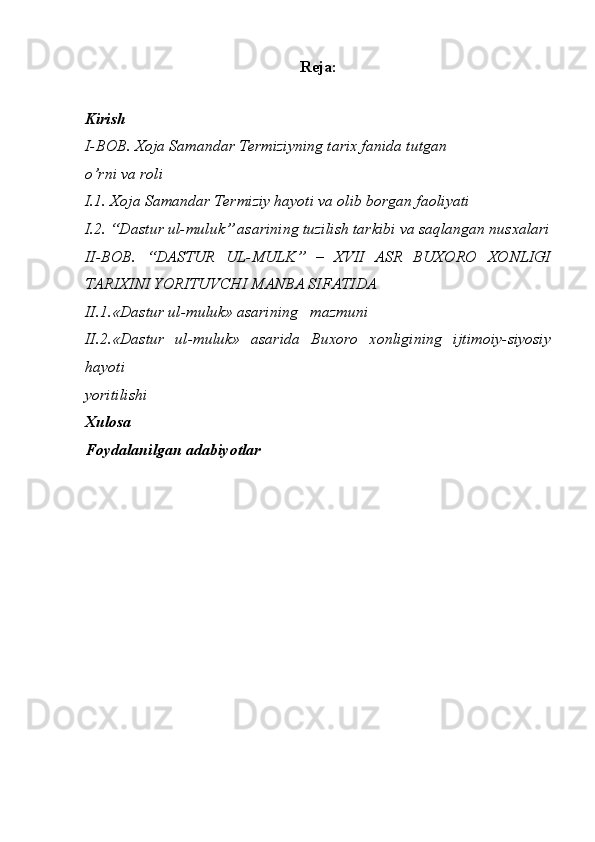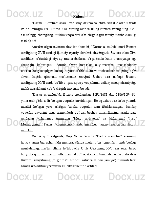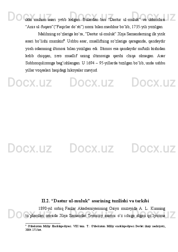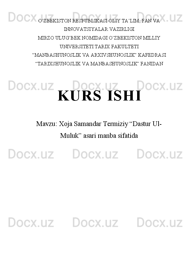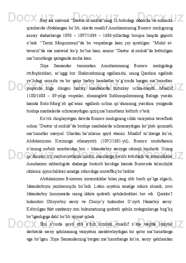 Xoja Samandar Termiziy “Dastur Ul-Muluk” asari manba sifatida