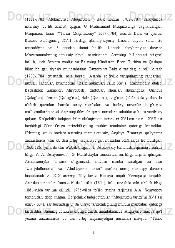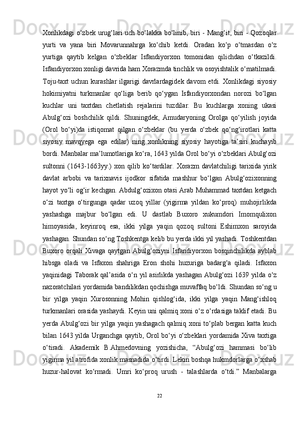 XONLIKLAR TARIXIGA OID TURKIY MАNBАLАR