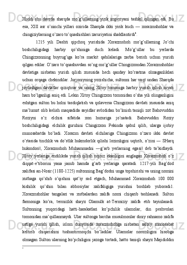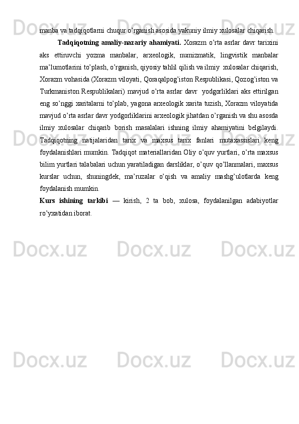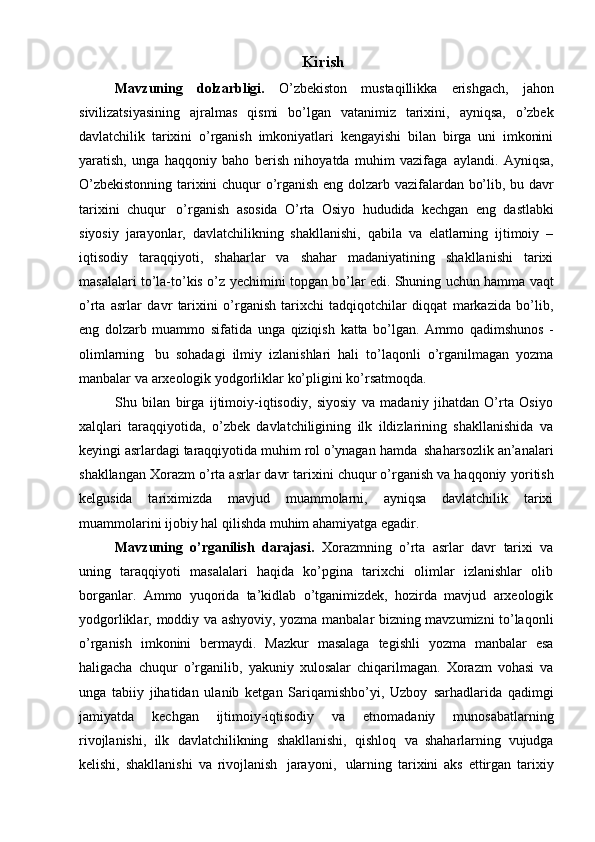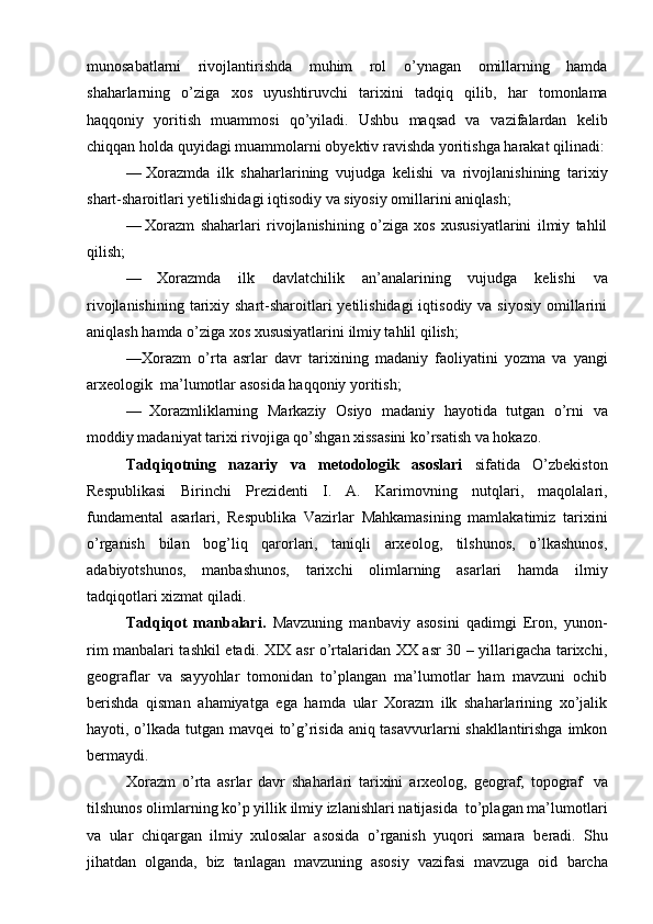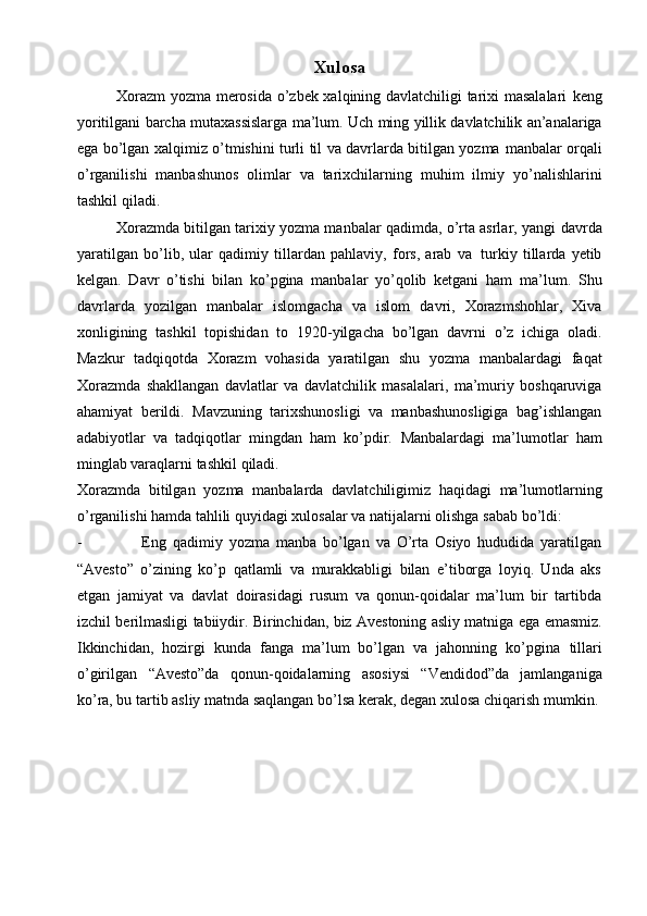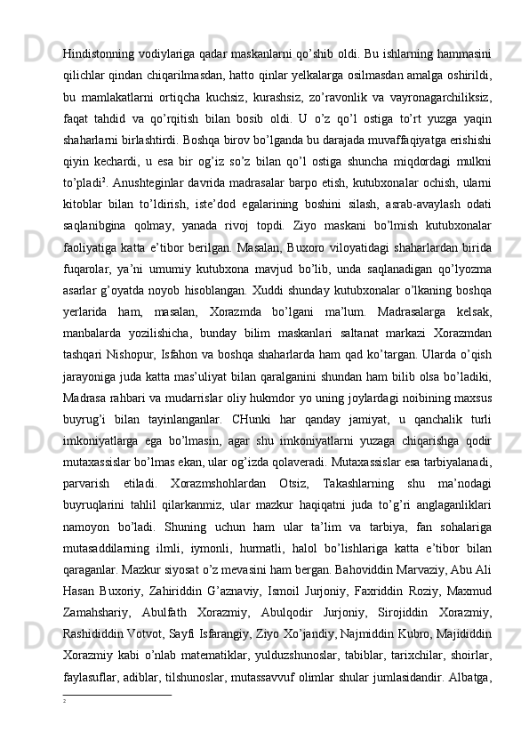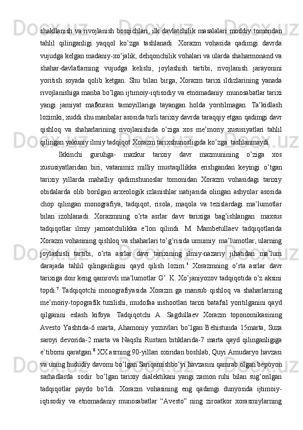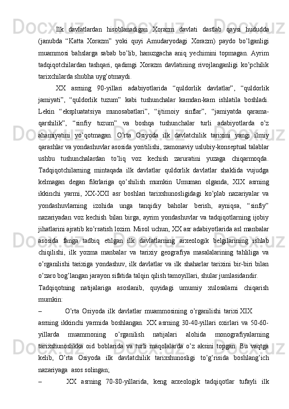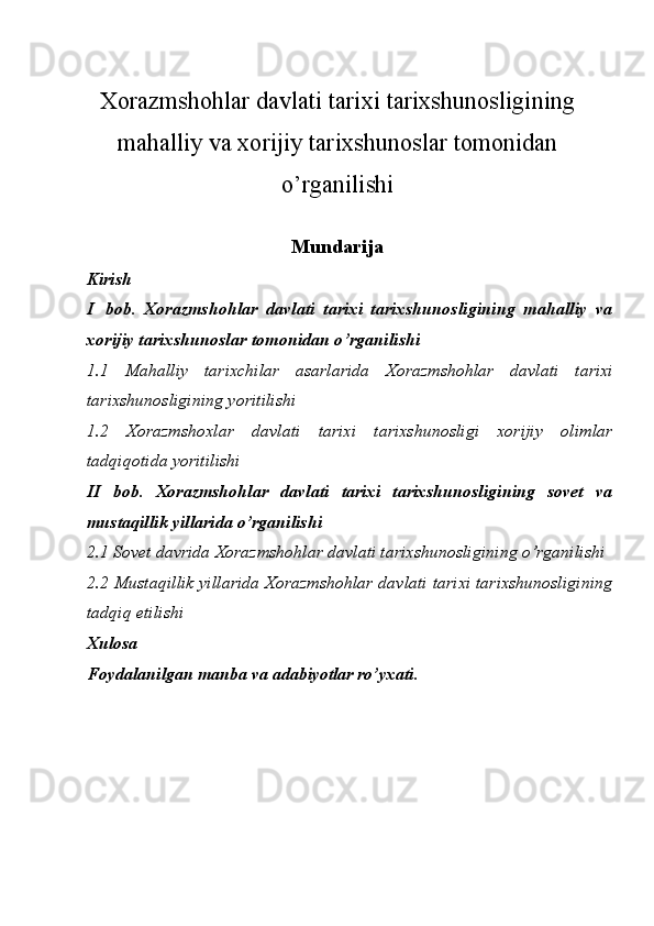 Xorazmshohlar davlati tarixi tarixshunosligining mahalliy va xorijiy tarixshunoslar tomonidan o’rganilishi