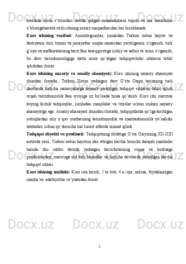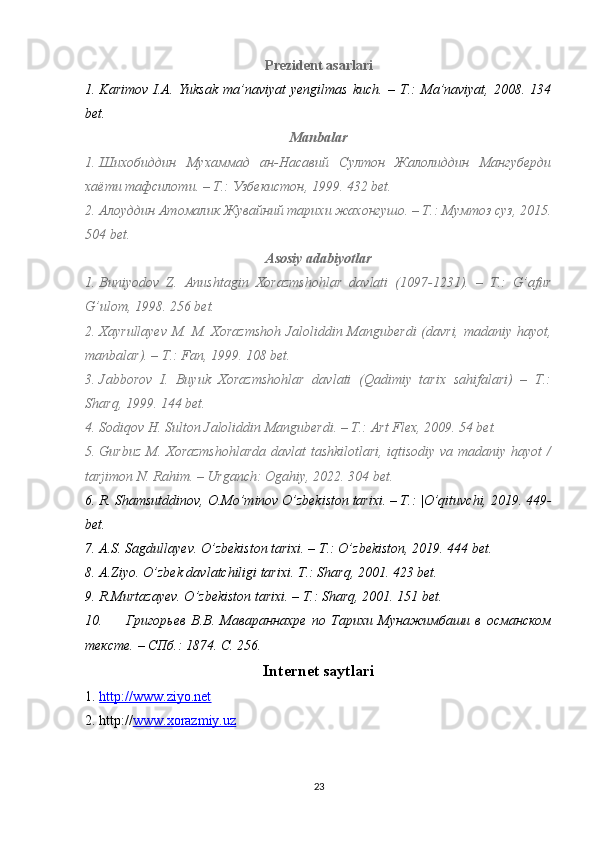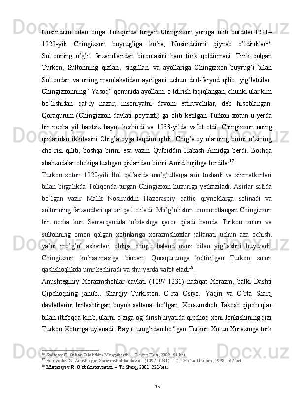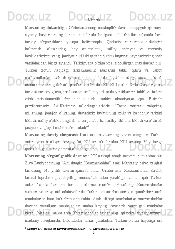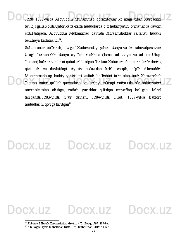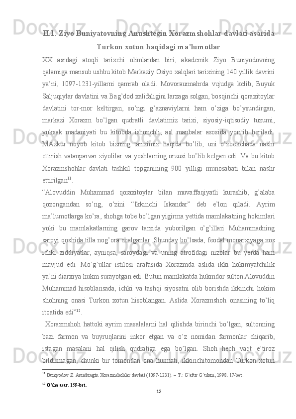 Xorazmshohlar malikasi Turkon Xotunning davlat boshqaruvida tutgan o’rni tarixi yoritlgan asarlarning tahlili