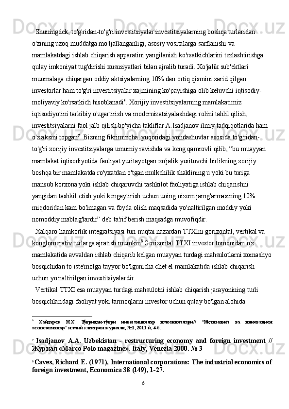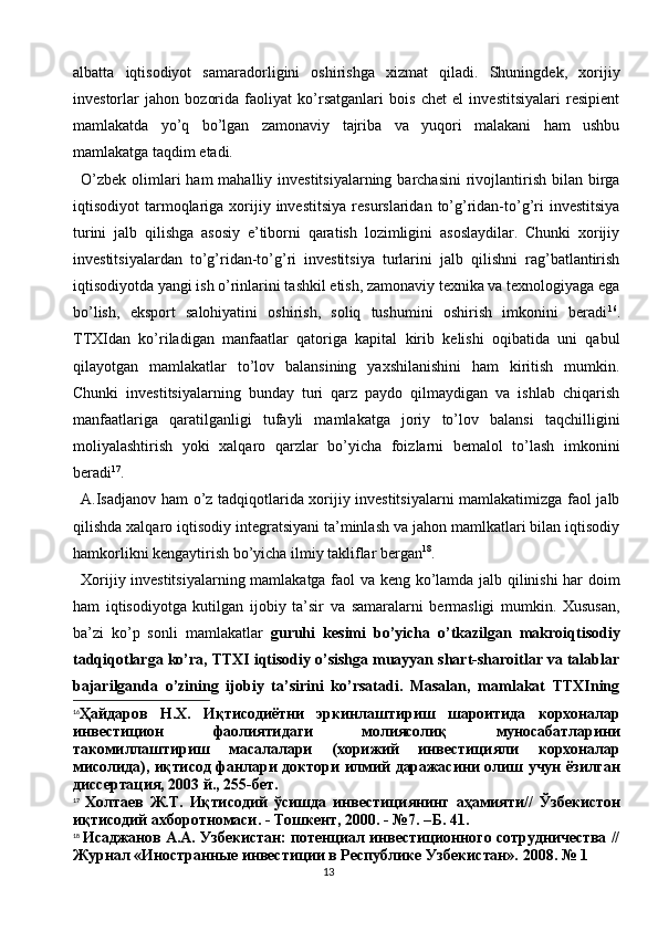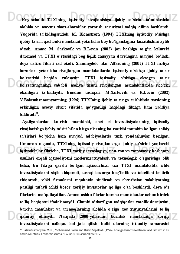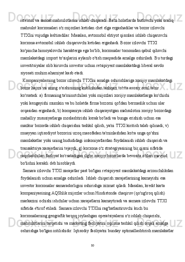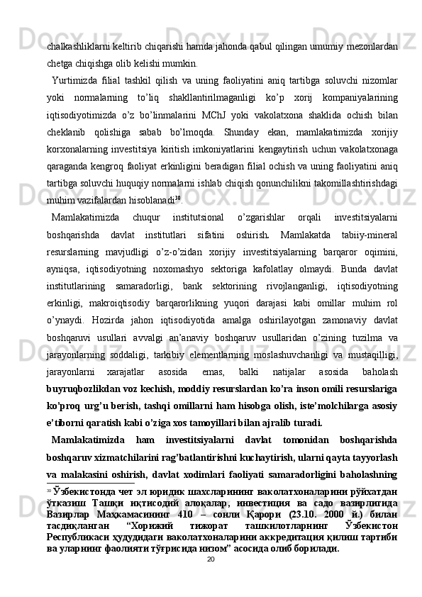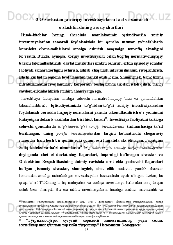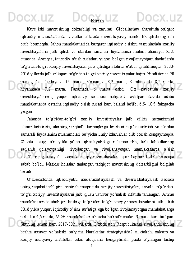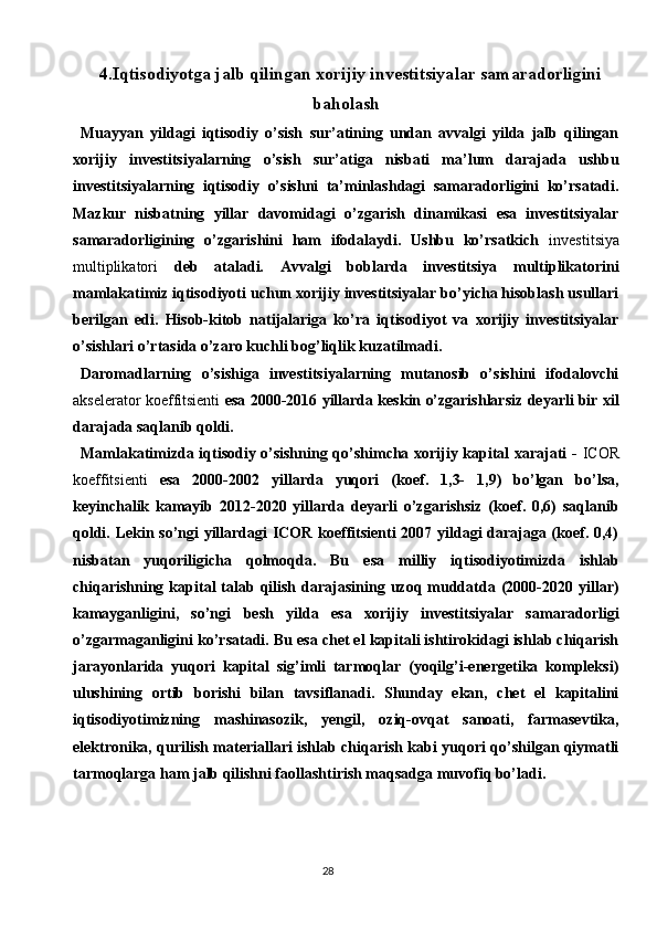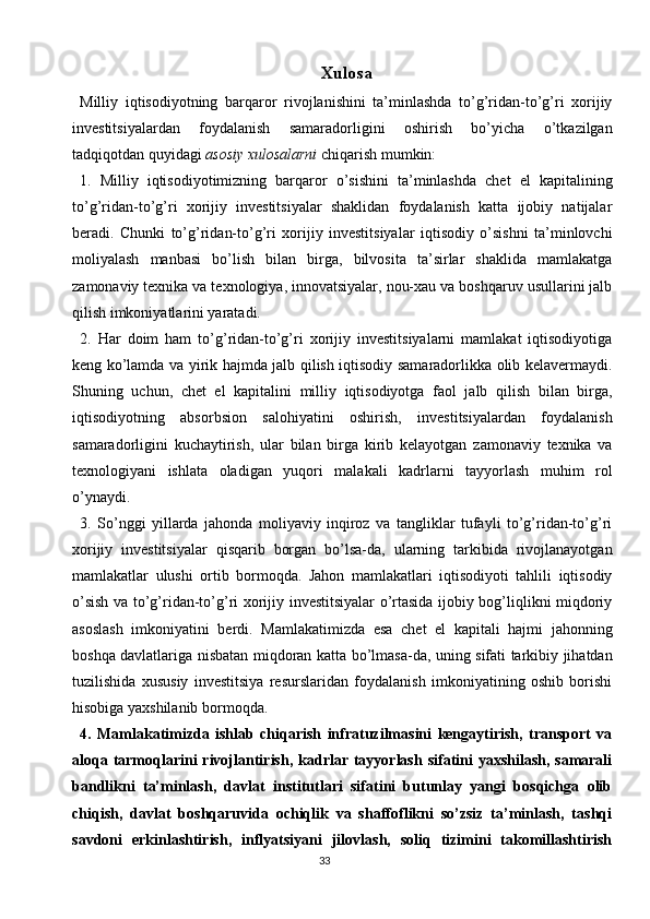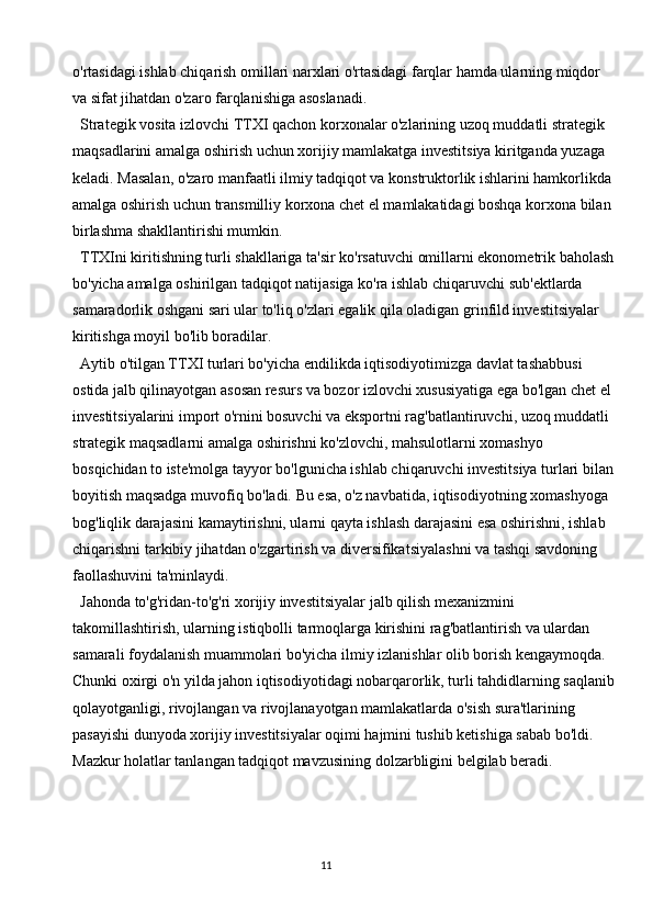 Xorijiy investitsiyalarning iqtisodiy o'sishni ta'minlashdagi o'rni