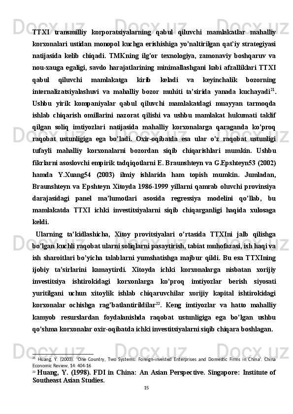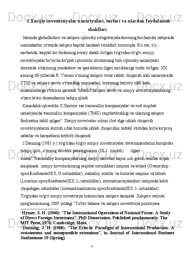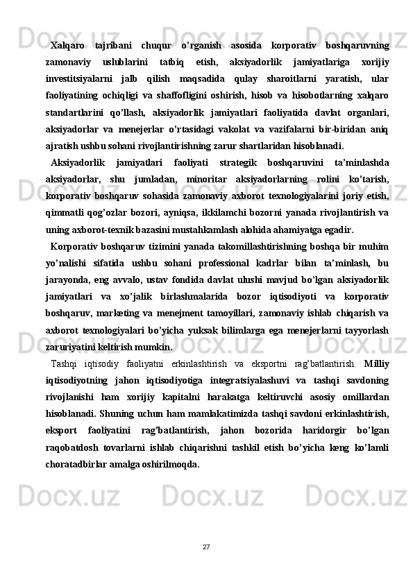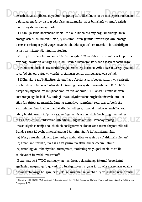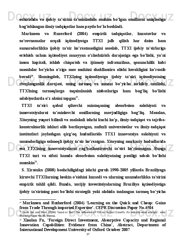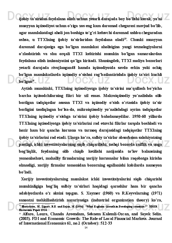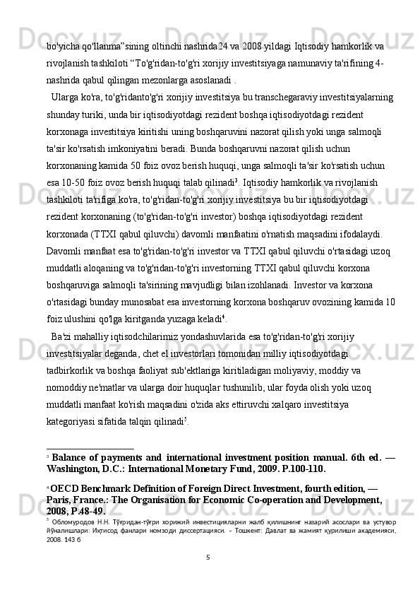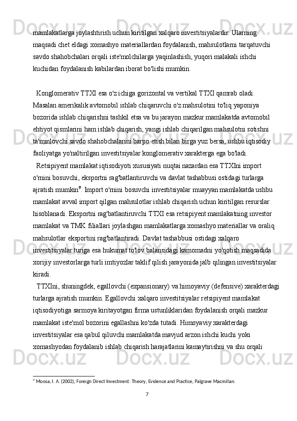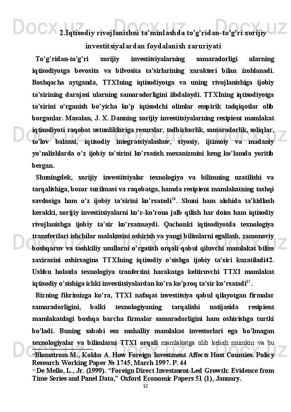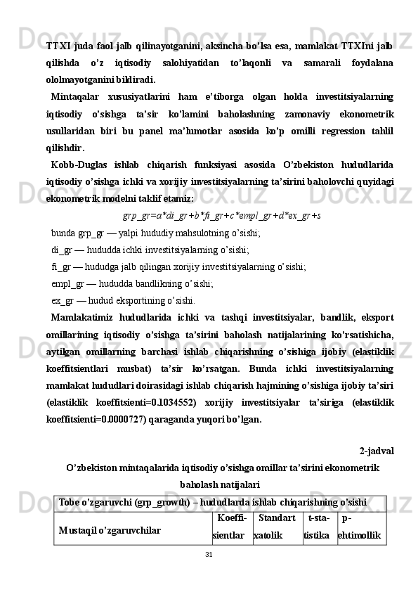 Xorijiy investitsiyalarning iqtisodiy o'sishni ta'minlashdagi o'rni