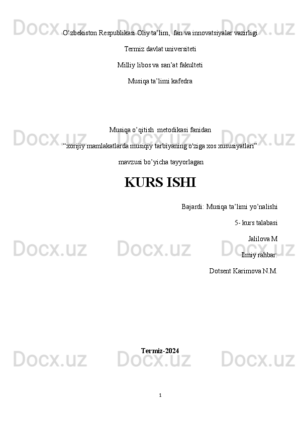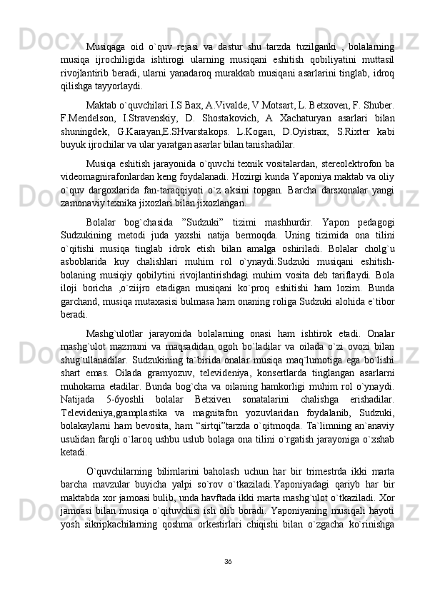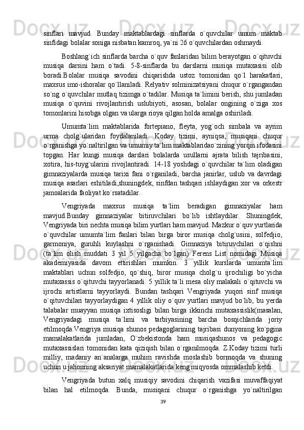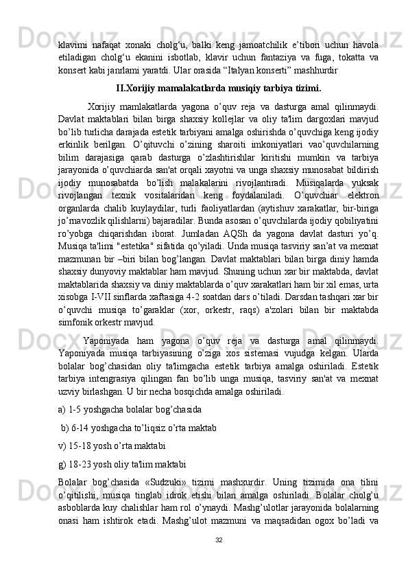 Xorijiy mamlakatlarda musiqiy tarbiyaning o'ziga xos xususiyatlari