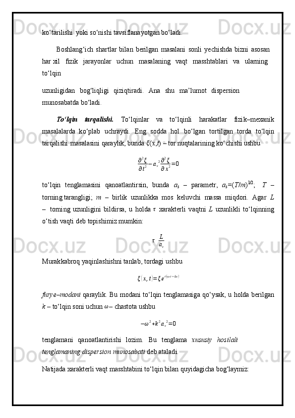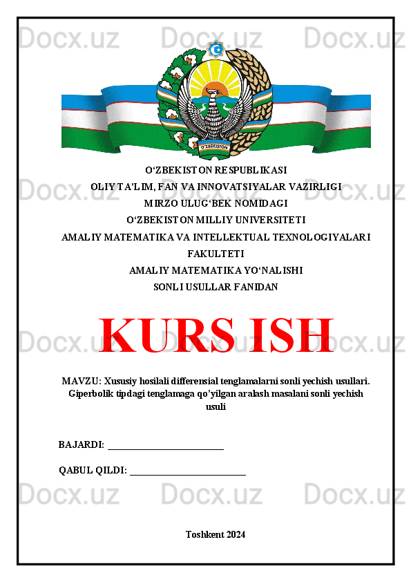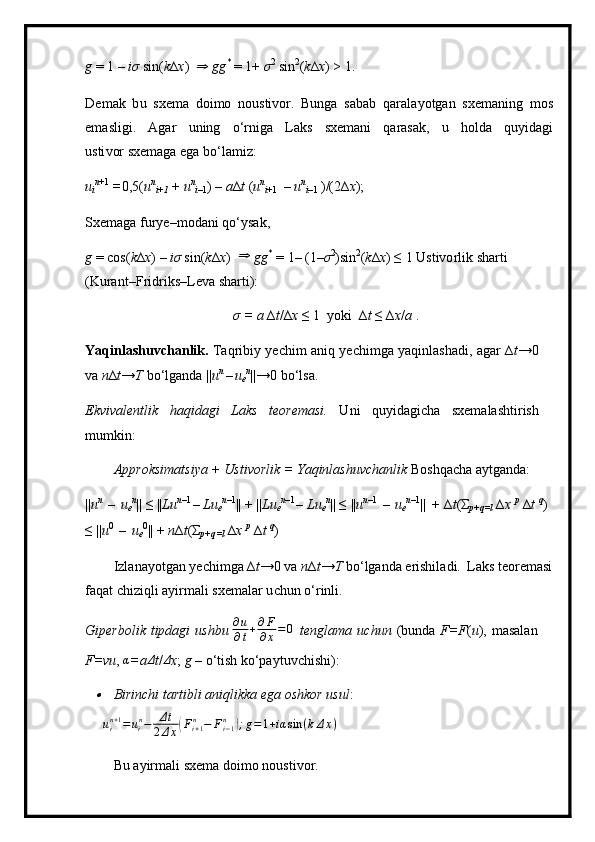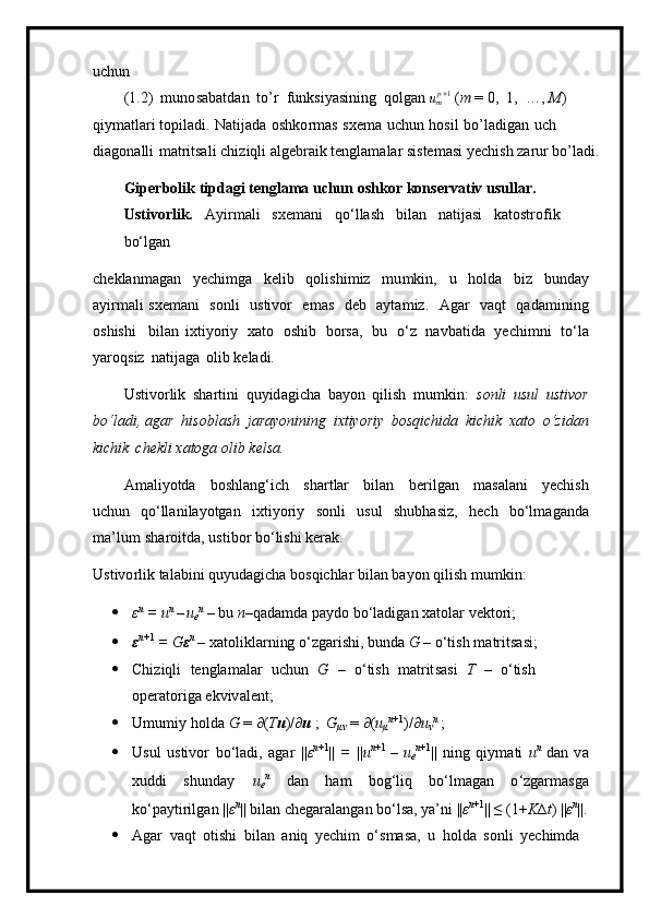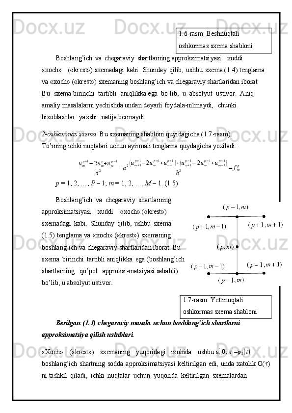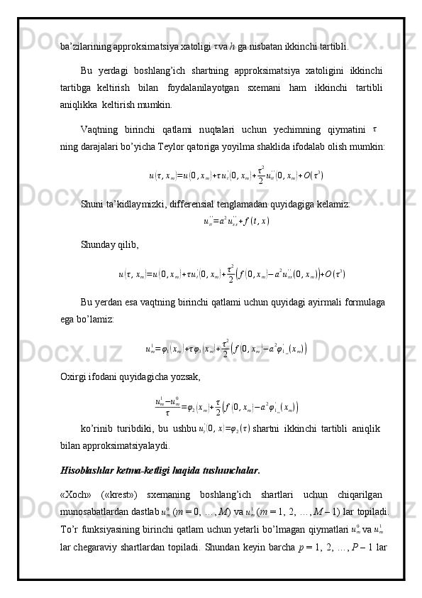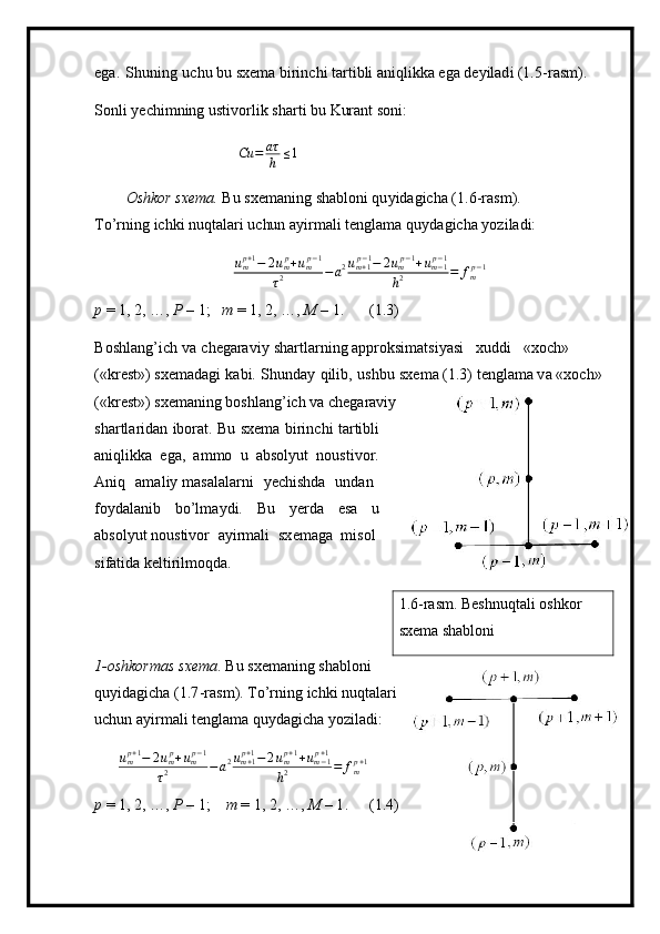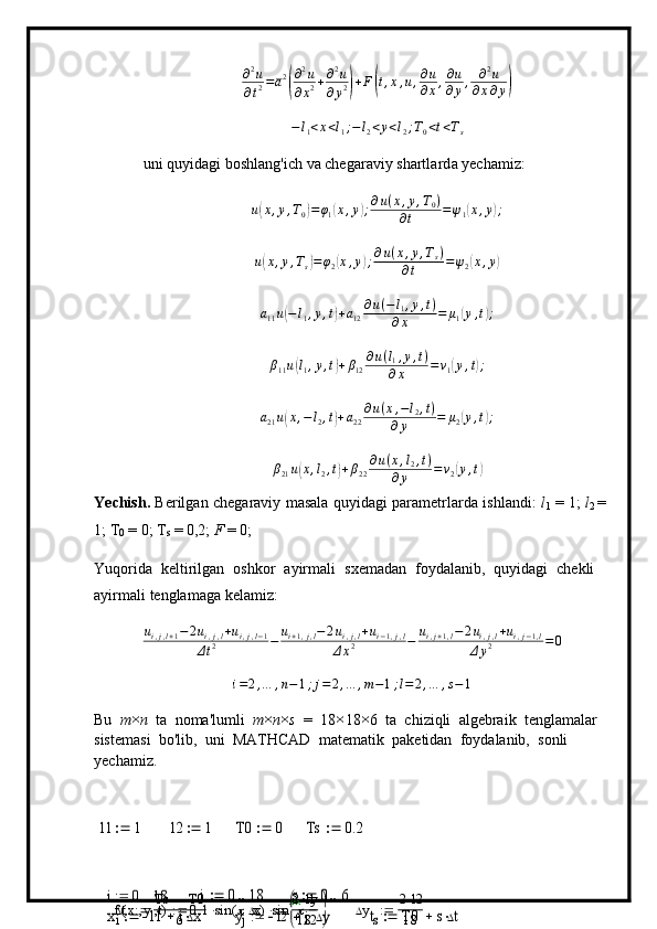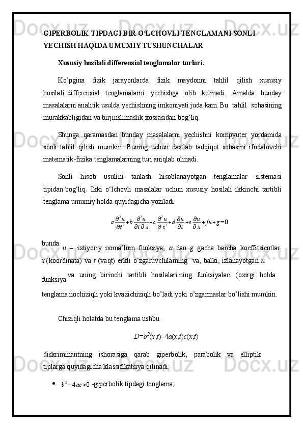 Mavzu: Xususiy hosilali differensial tenglamalarni sonli yechish usullari. Giperbolik tipdagi tenglamaga qo’yilgan aralash masalani sonli yechish usuli