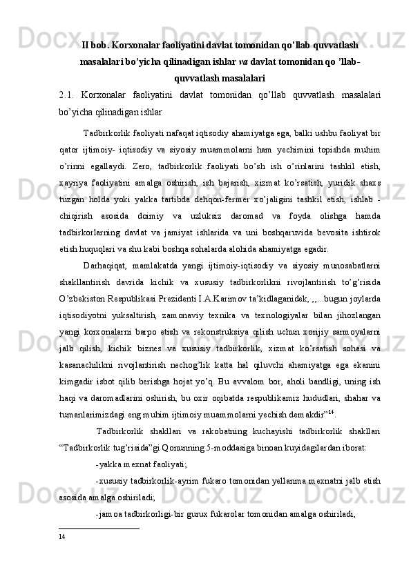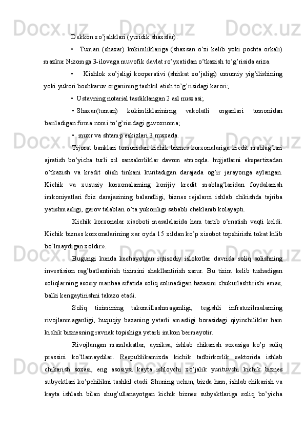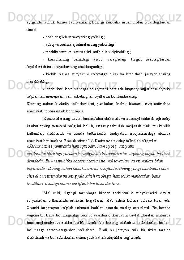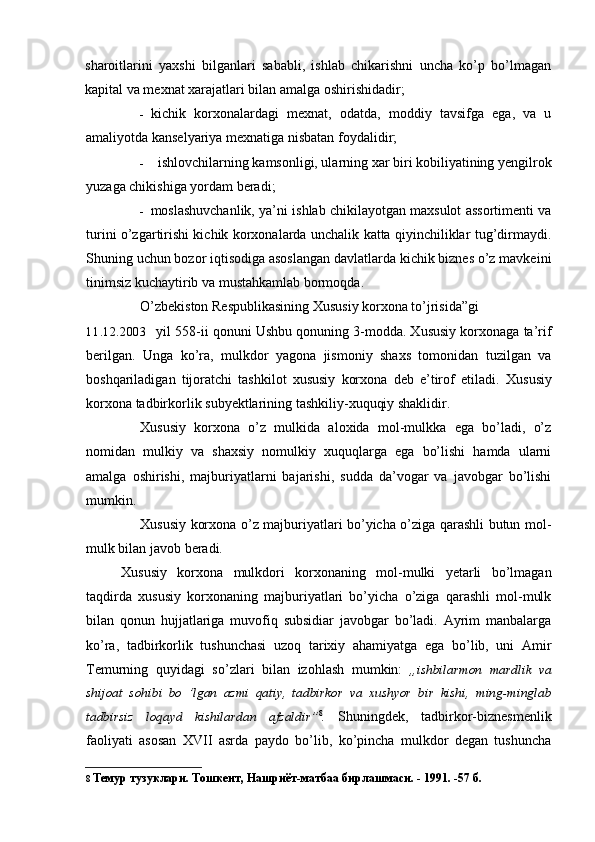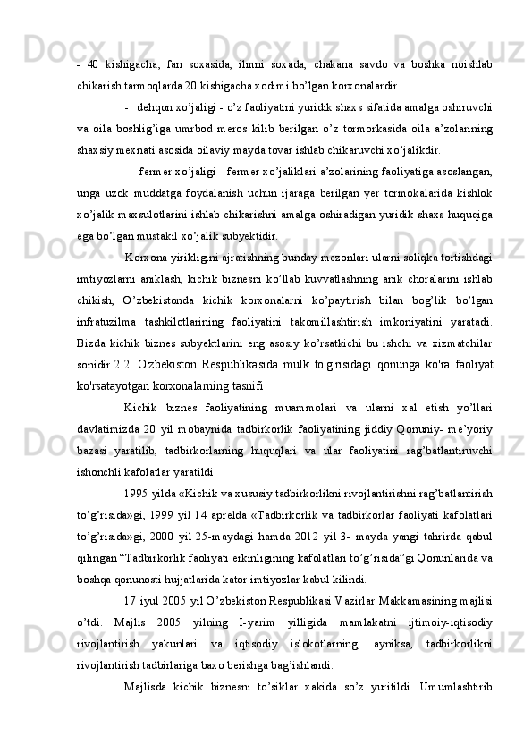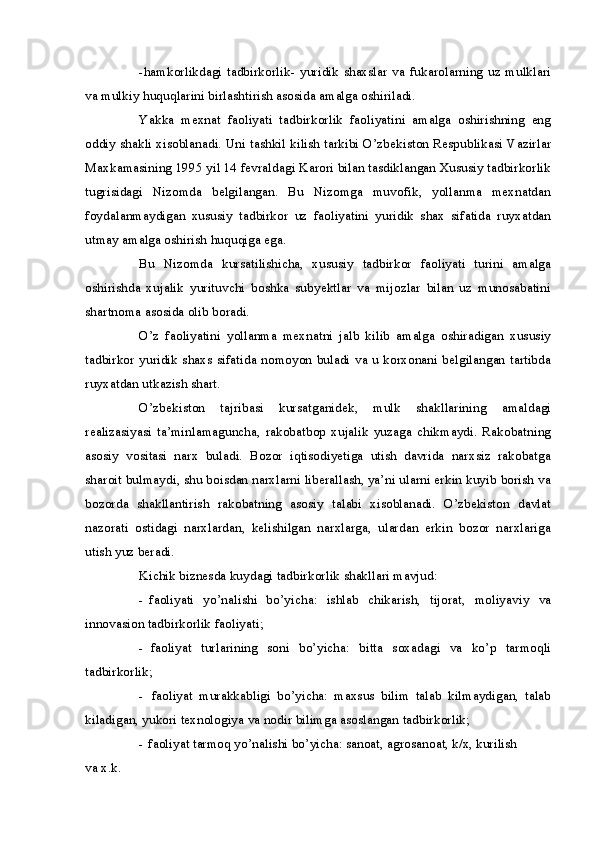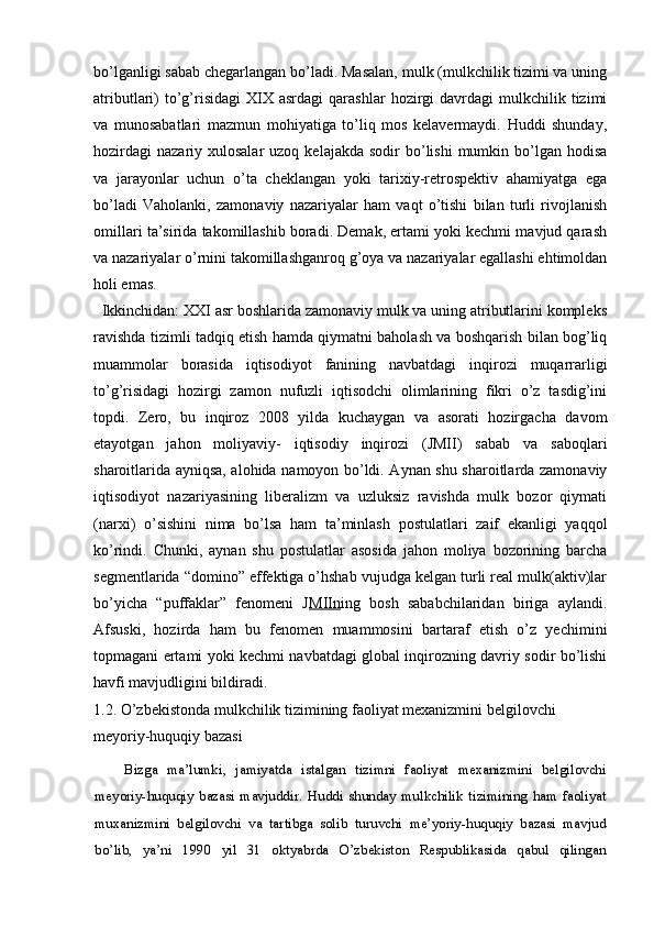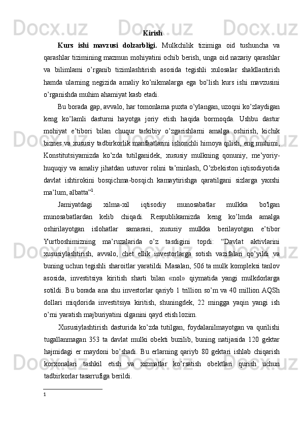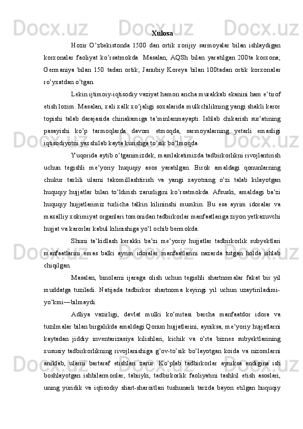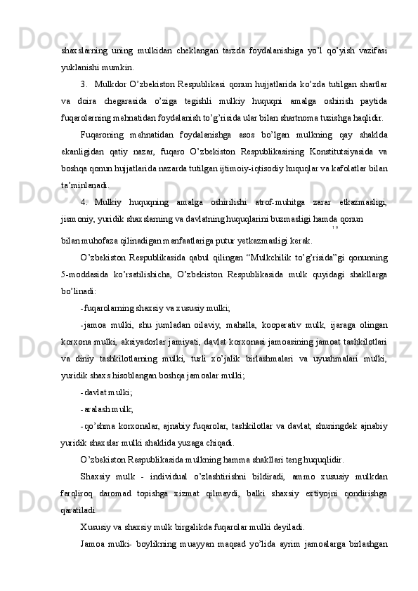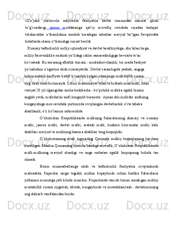 Xususiy mulkchilikning mohiyati va O’zbekistonda uni rivojlantirish muammolari