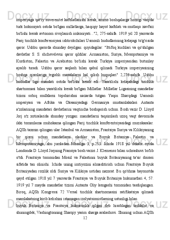 Millatlar Ligasi paktining 22-moddasida sobiq Usmonli imperiyasi hududini o'tkazish