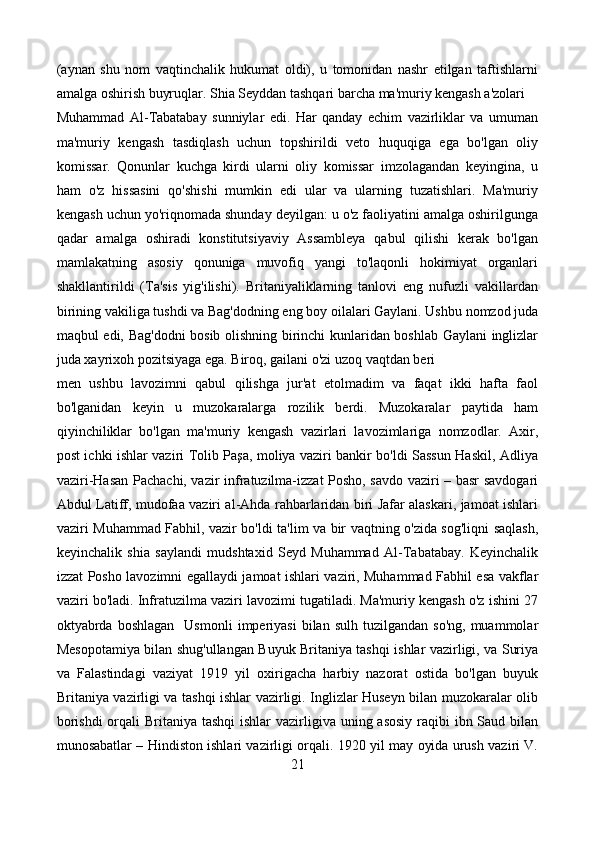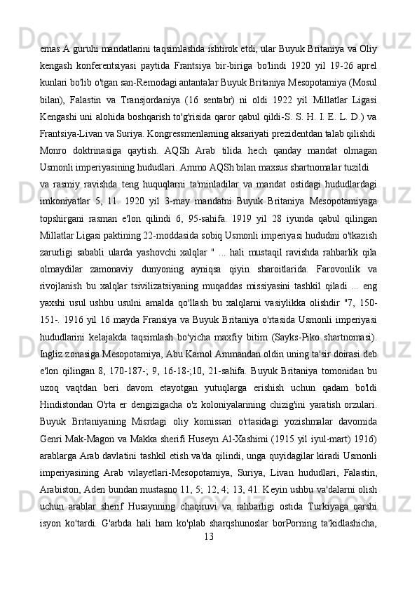 imkoniyatlar   5,   11.   1920   yil   3-may   mandatni   Buyuk   Britaniya   Mesopotamiyaga