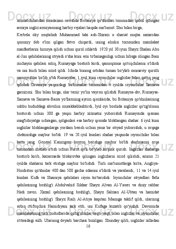boshlanishi   haqida   Britaniya   hukumati   Kerbelda   ham   e'lon   qildi.   Ushbu   hududdagi