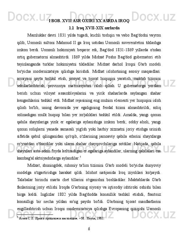 imkon   berdi.   Usmonli   hokimiyati   beqaror   edi,   Bag'dod   1831-1869   yillarda   o'ndan