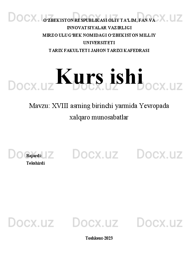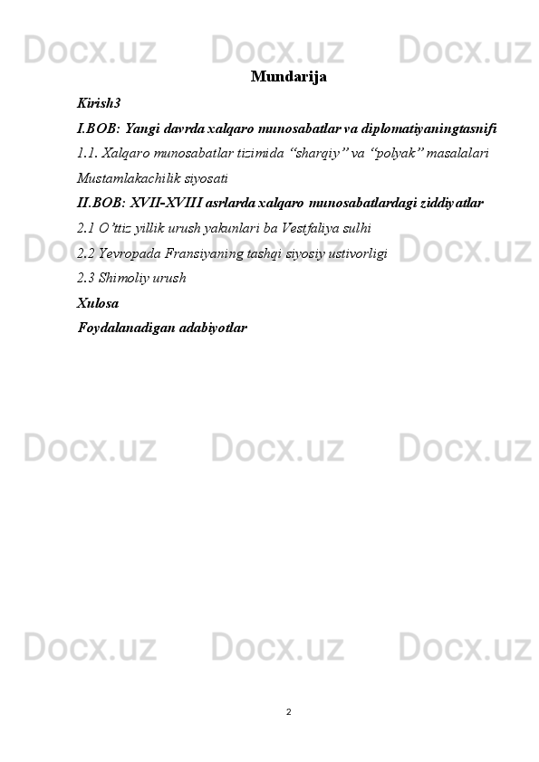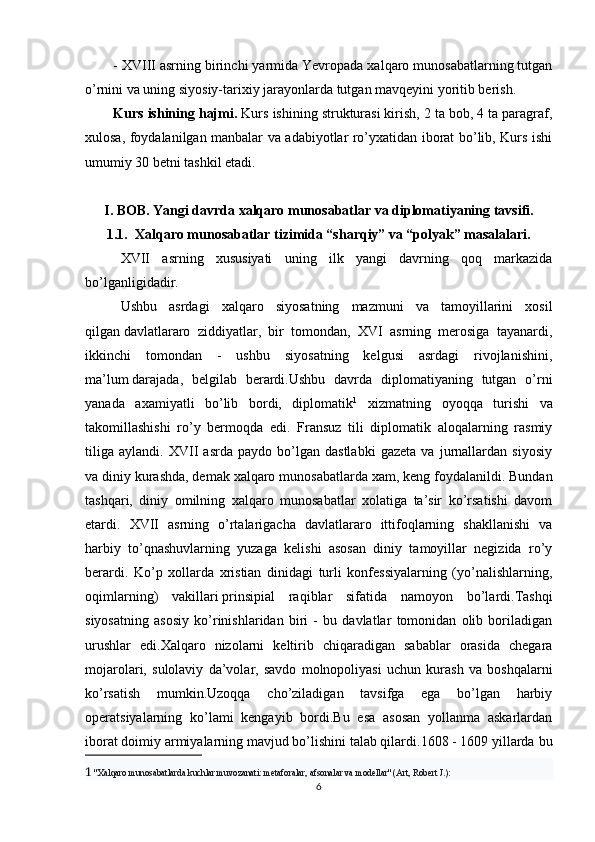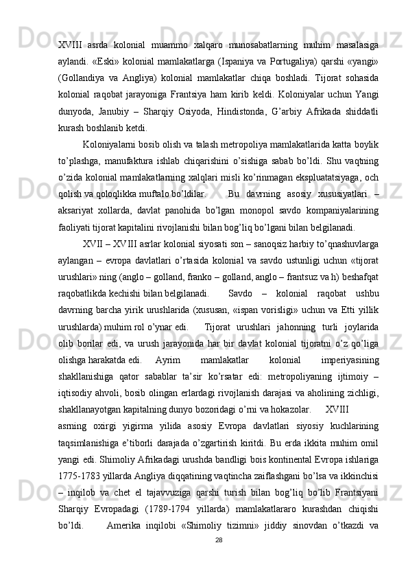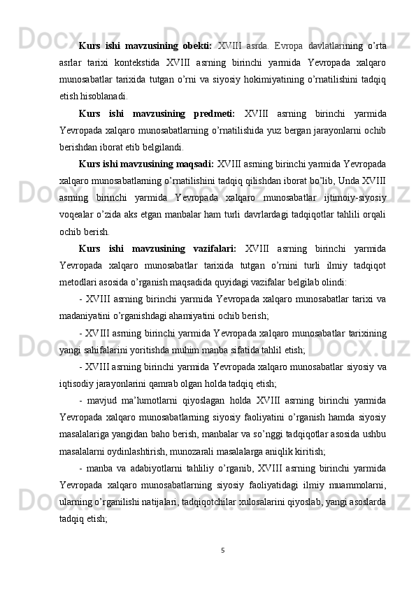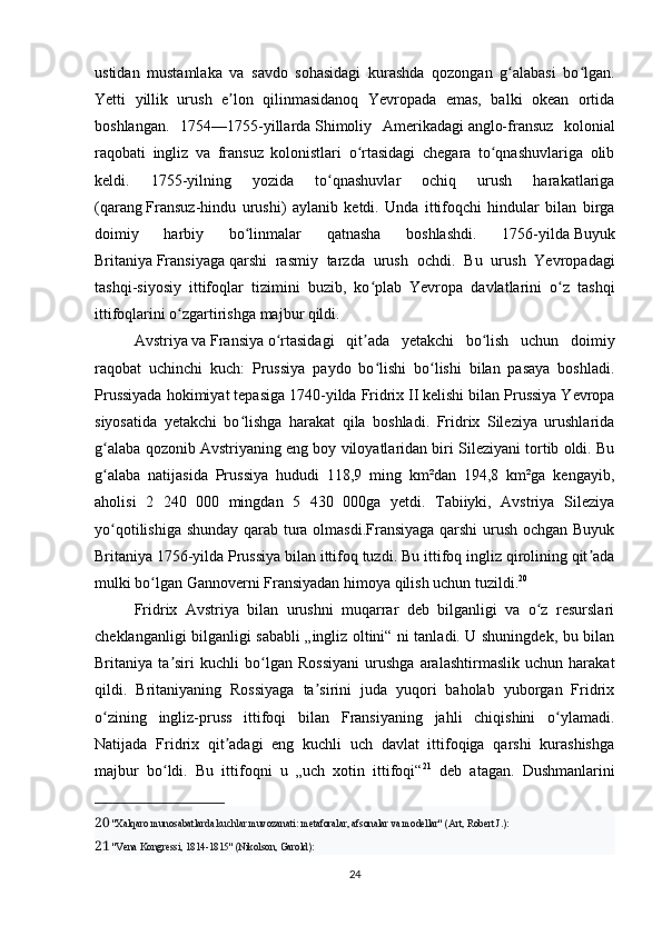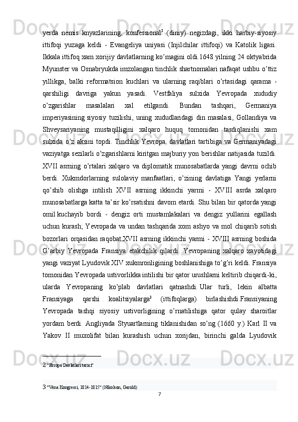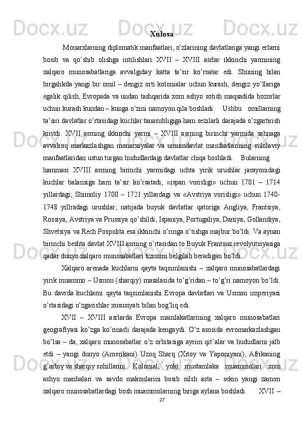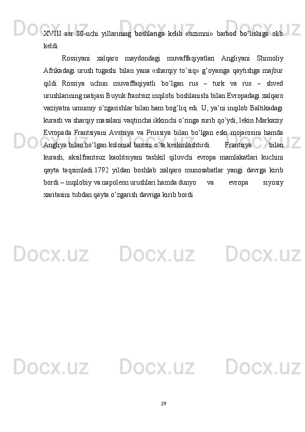 XVIII asrning birinchi yarmida Yevropada xalqaro munosabatlar