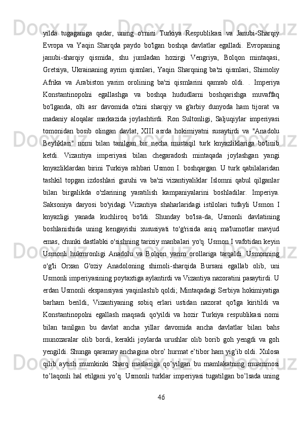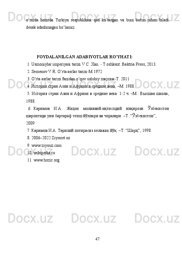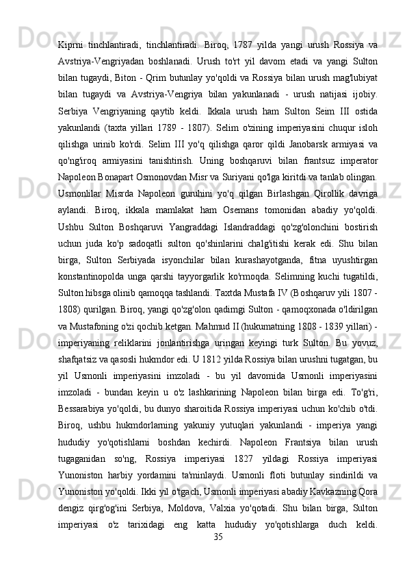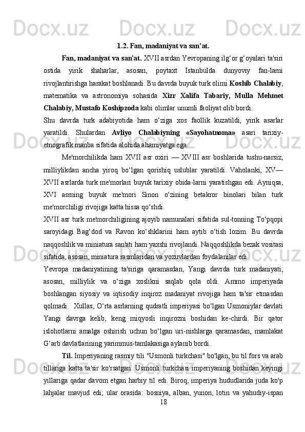 XVIII-XIX asrlarda Usmoniylar imperiyasi haqida