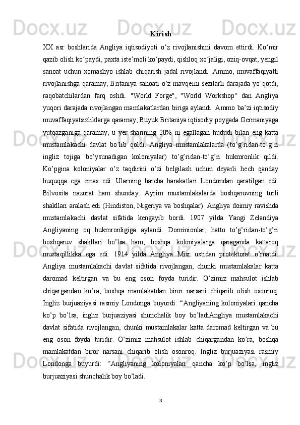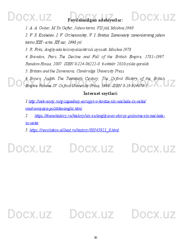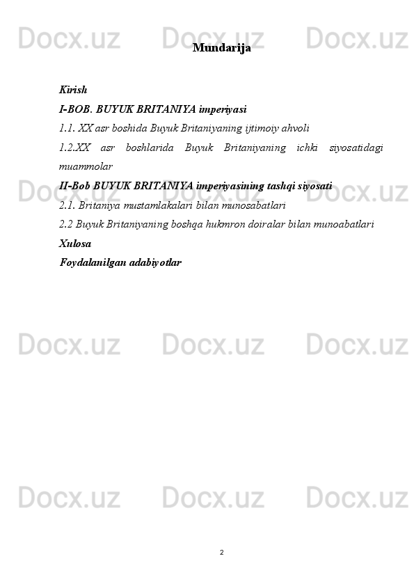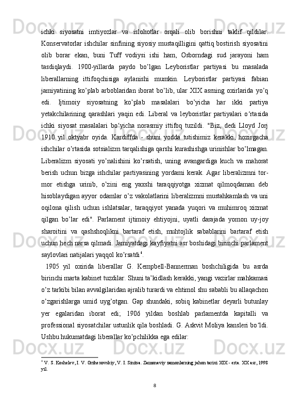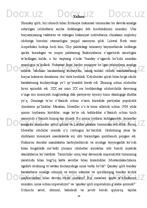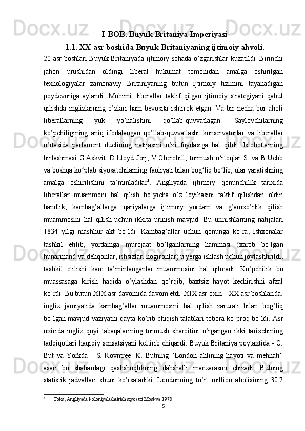 XX asr boshida Buyuk Britaniyaning ichki va tashqi siyosati