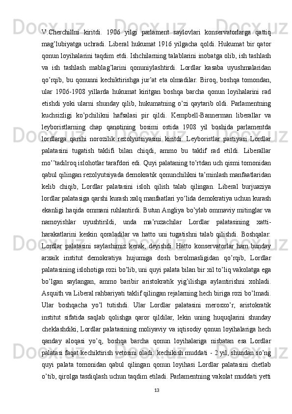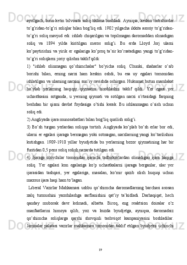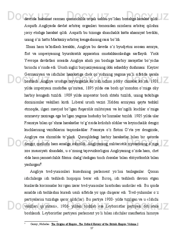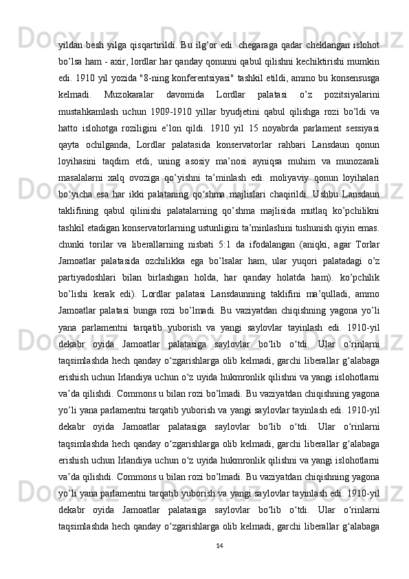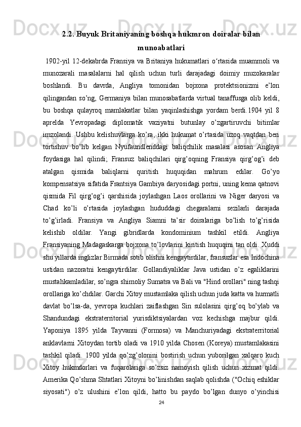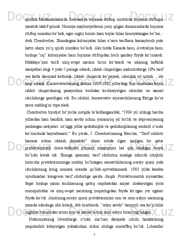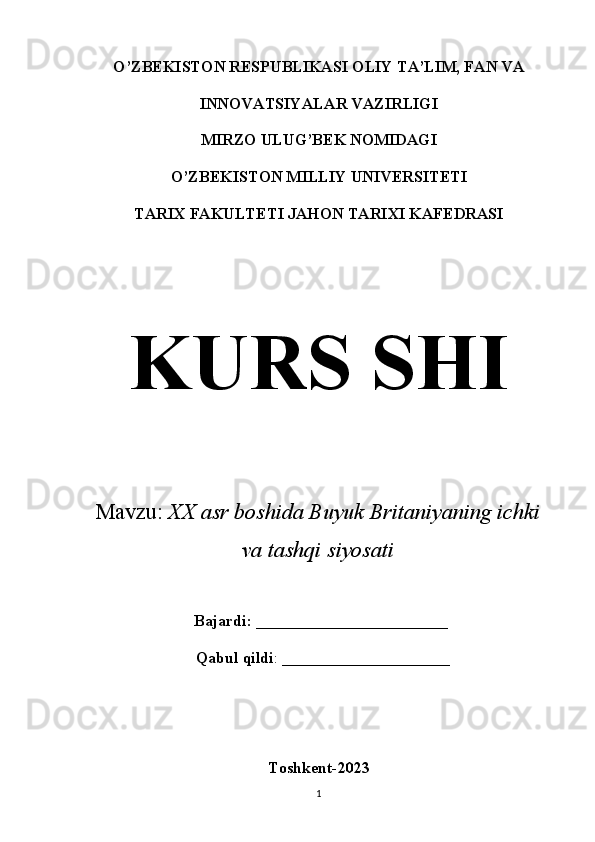 XX asr boshida Buyuk Britaniyaning ichki va tashqi siyosati