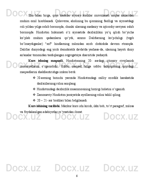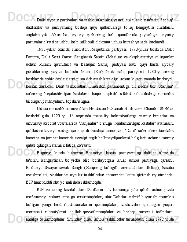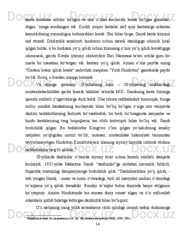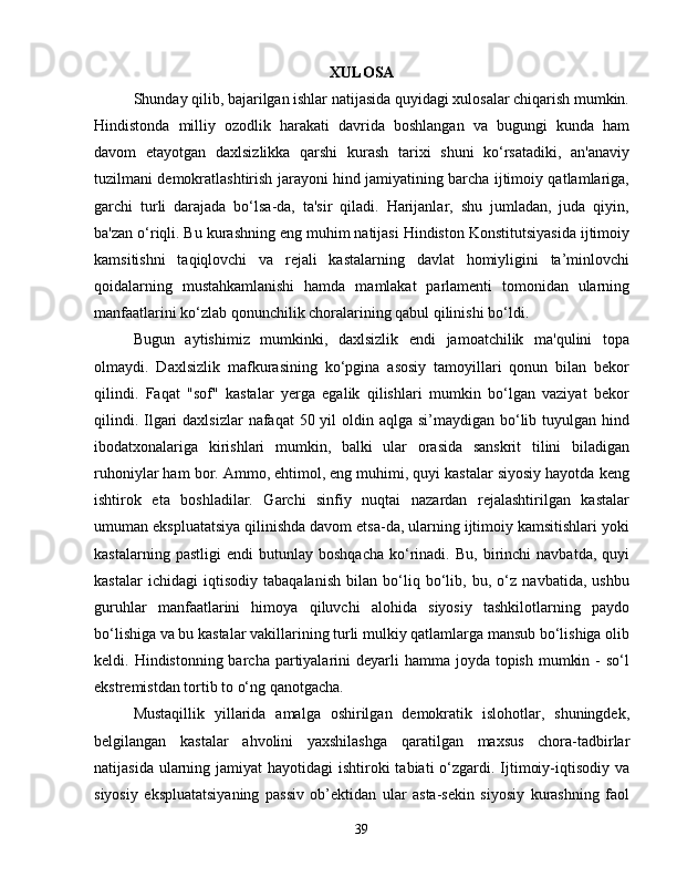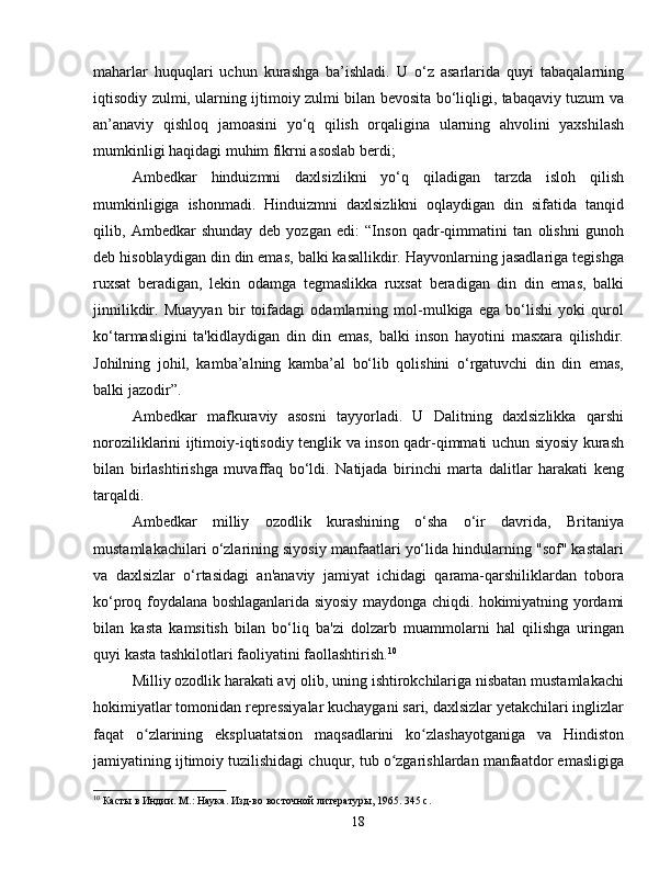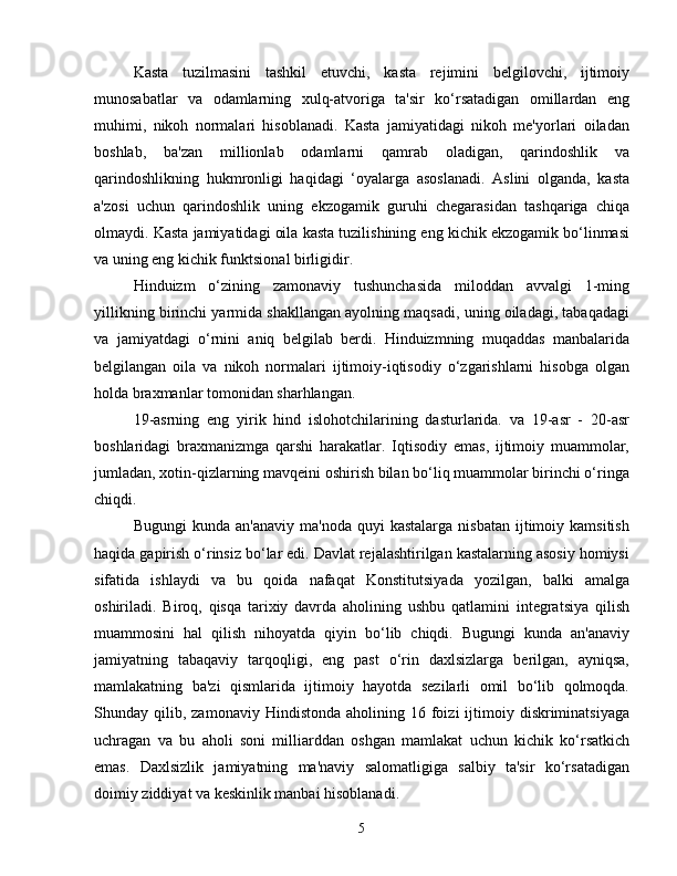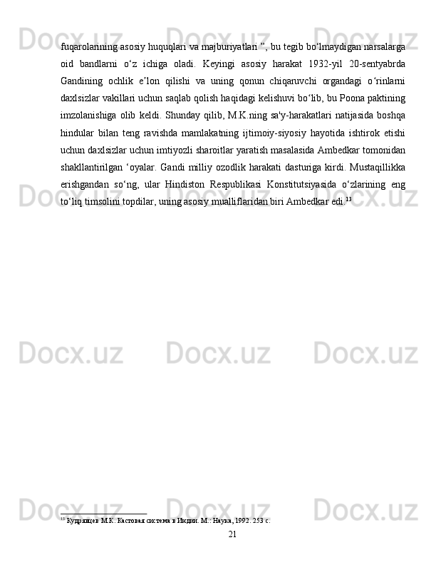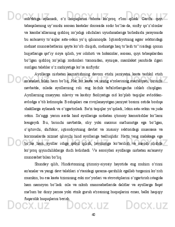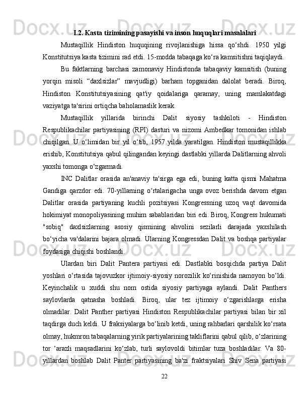 I.2. Kasta tizimining pasayishi va inson huquqlari masalalari 22
