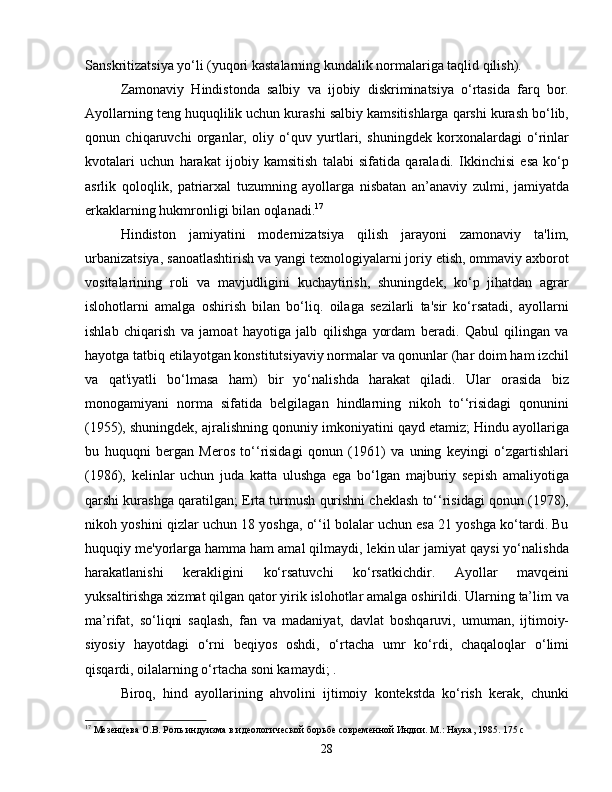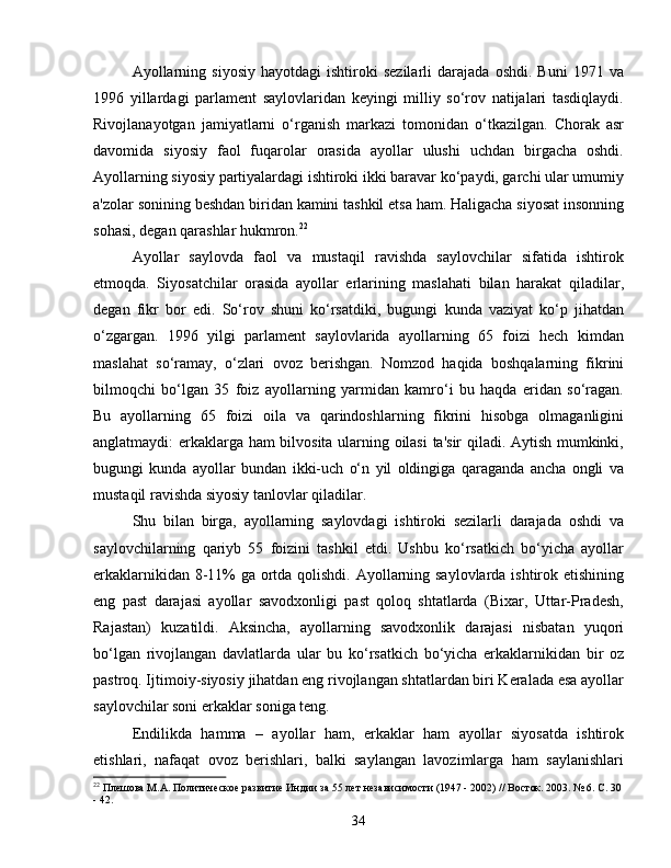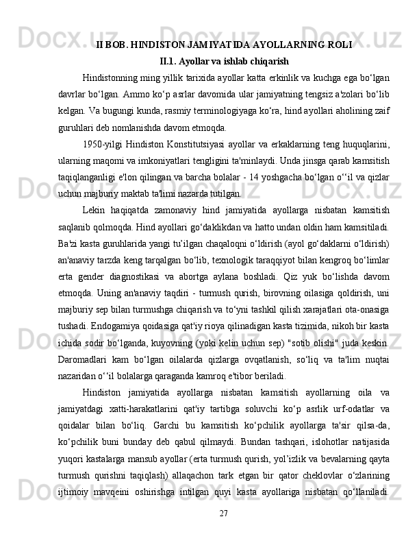 II BOB. HINDISTON JAMIYATIDA AYOLLARNING ROLI. 27