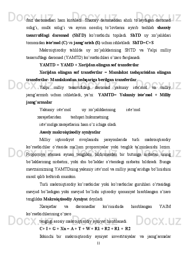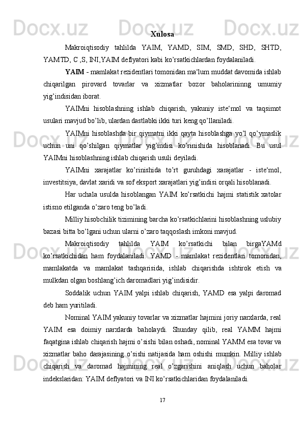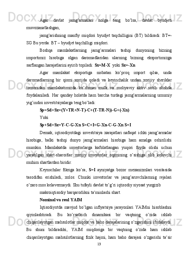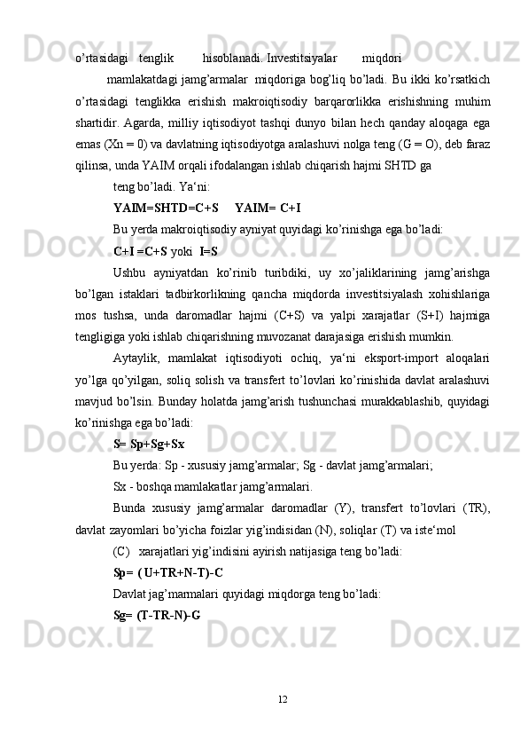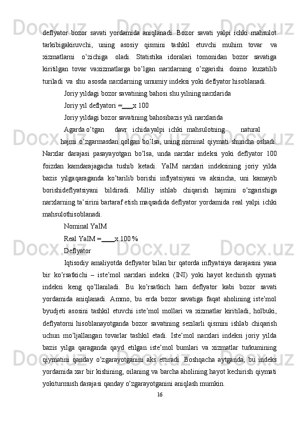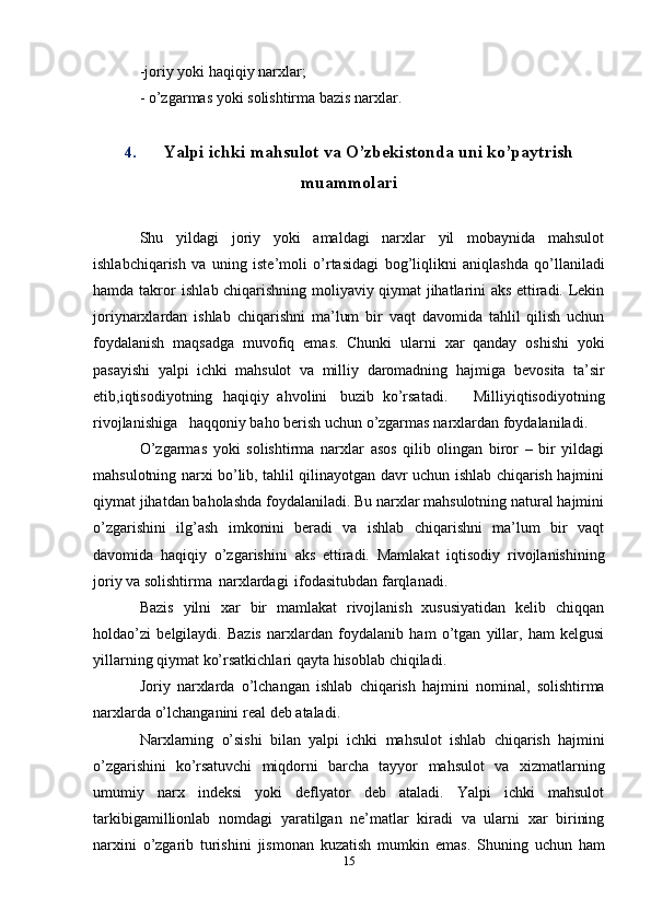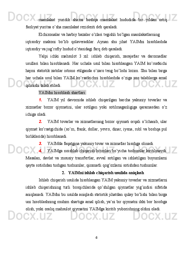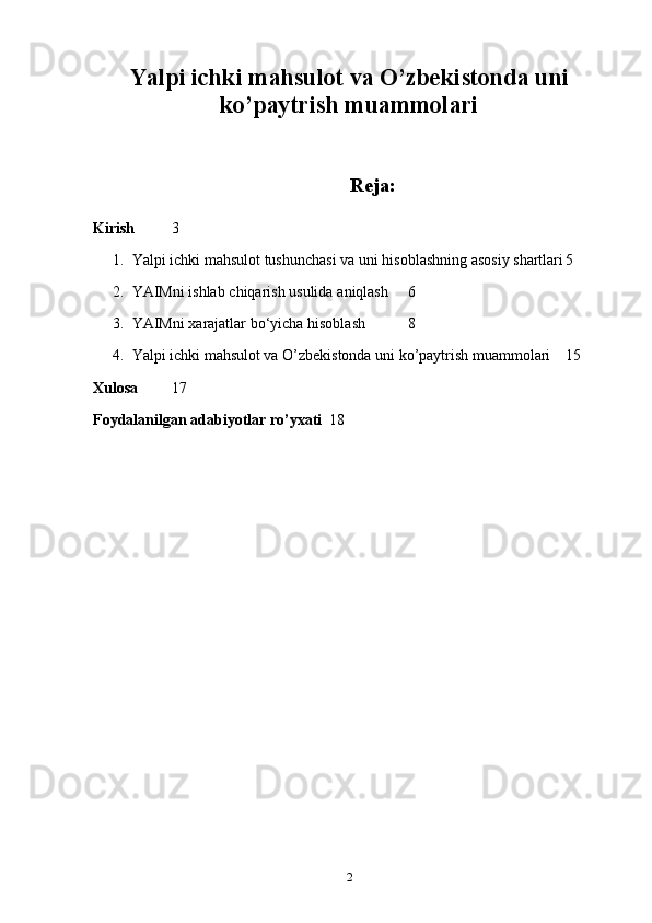 Yalpi ichki mahsulot va O’zbekistonda uni ko’paytrish muammolari