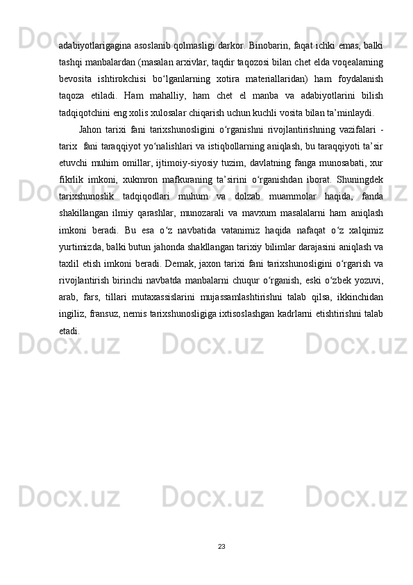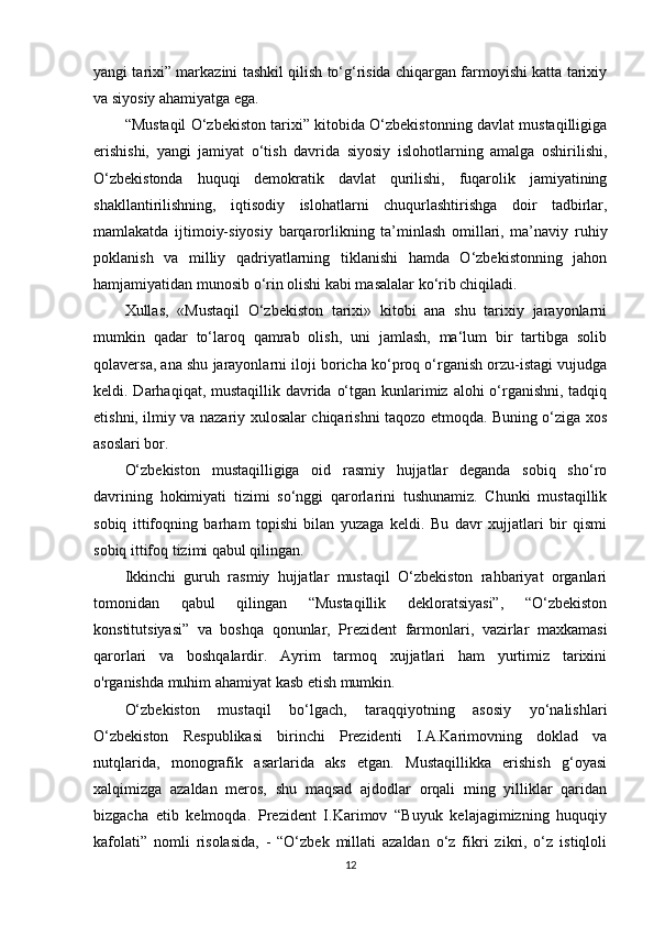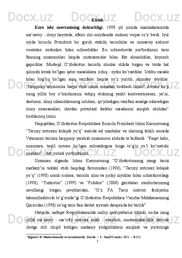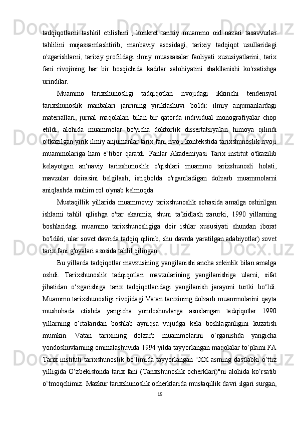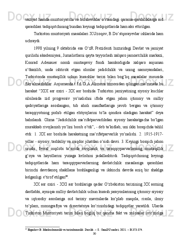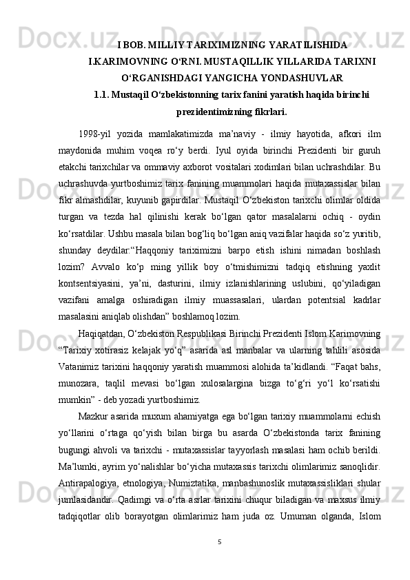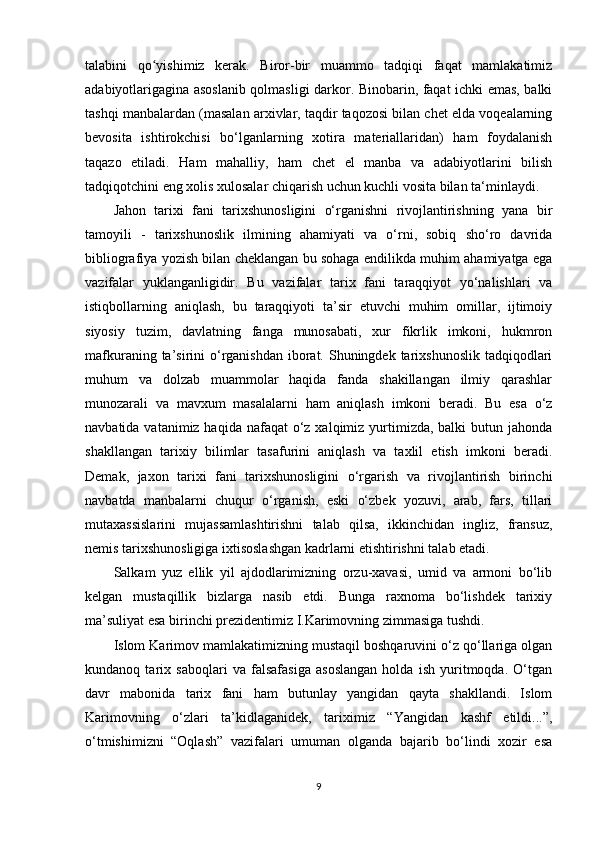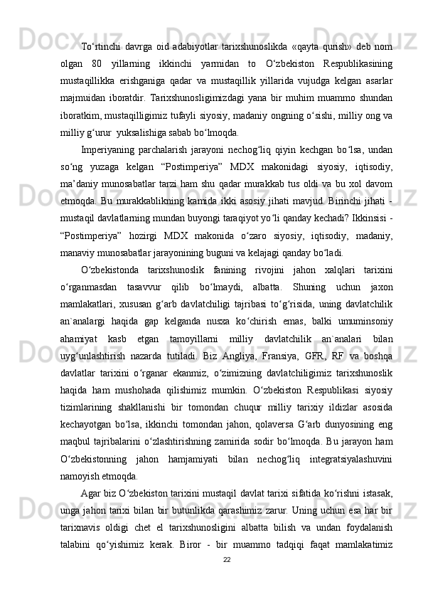 Mustaqillik yillarida tarixni o‘rganishdagi yangicha yondashuvlar