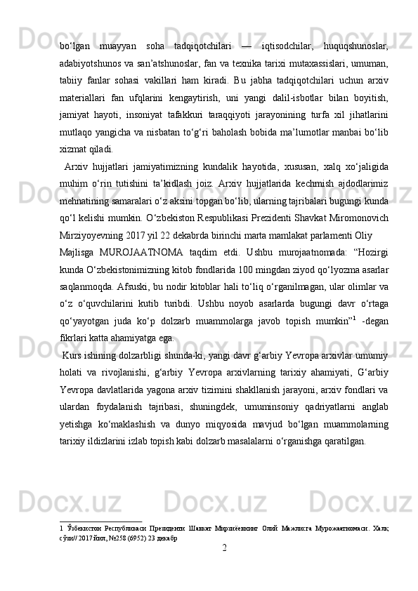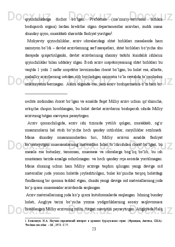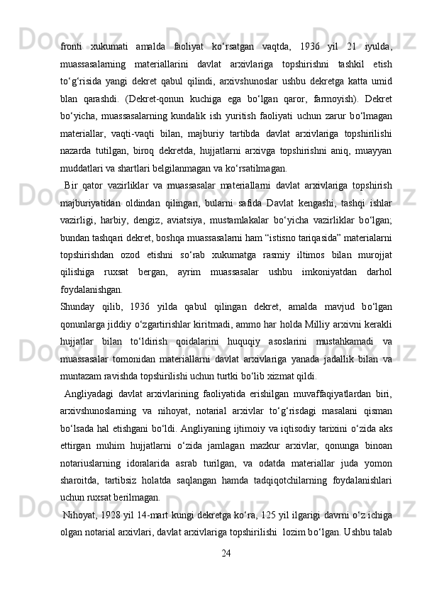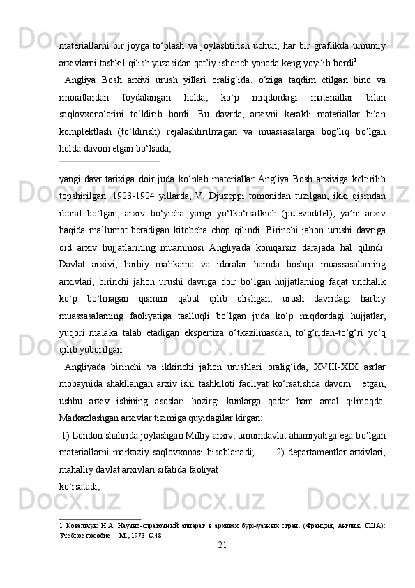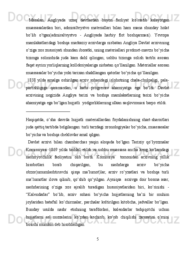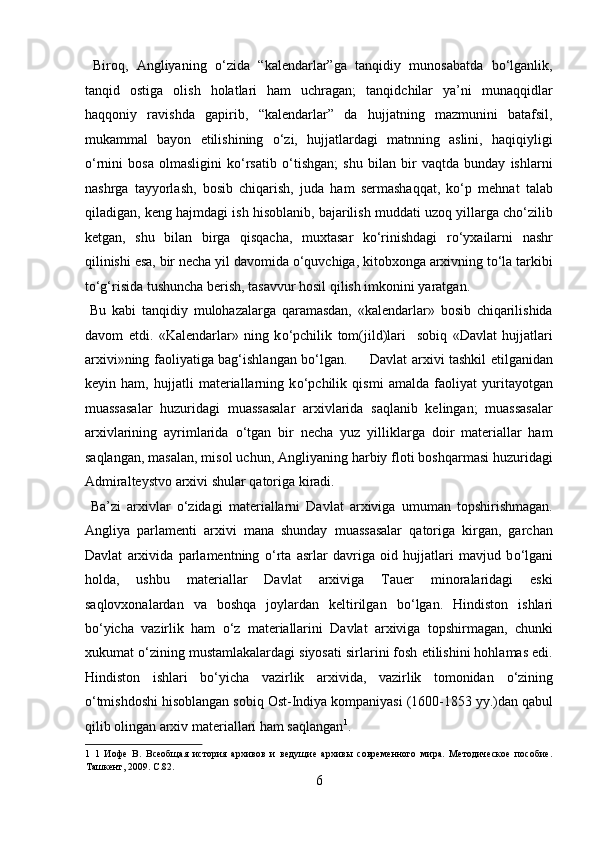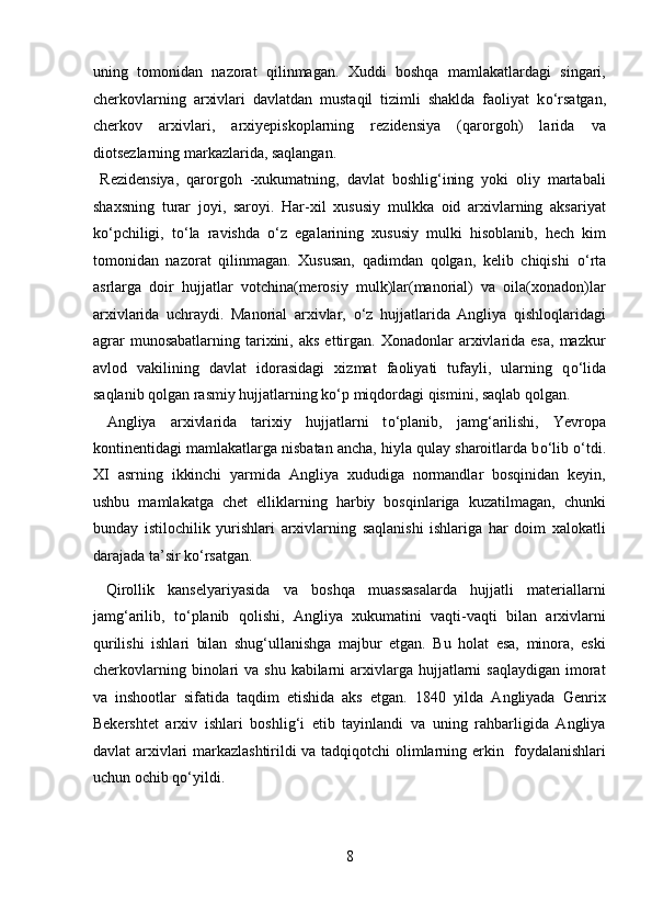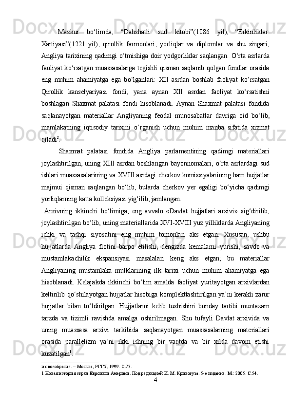 Yangi davrda Angilyada arxiv ishi haqida
