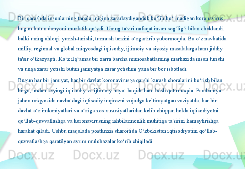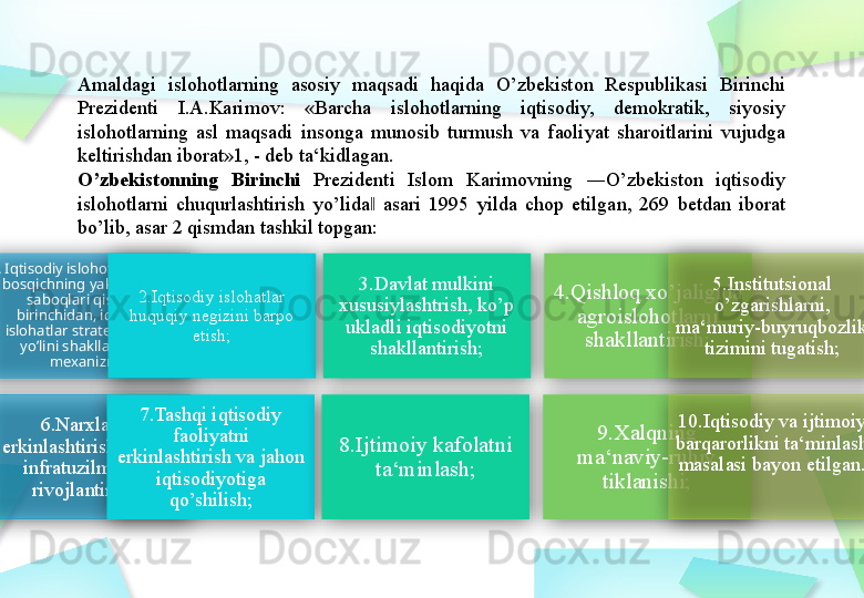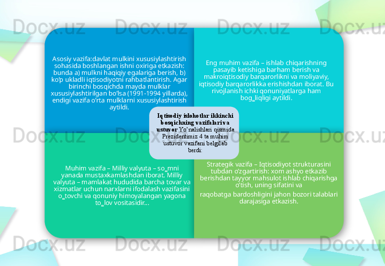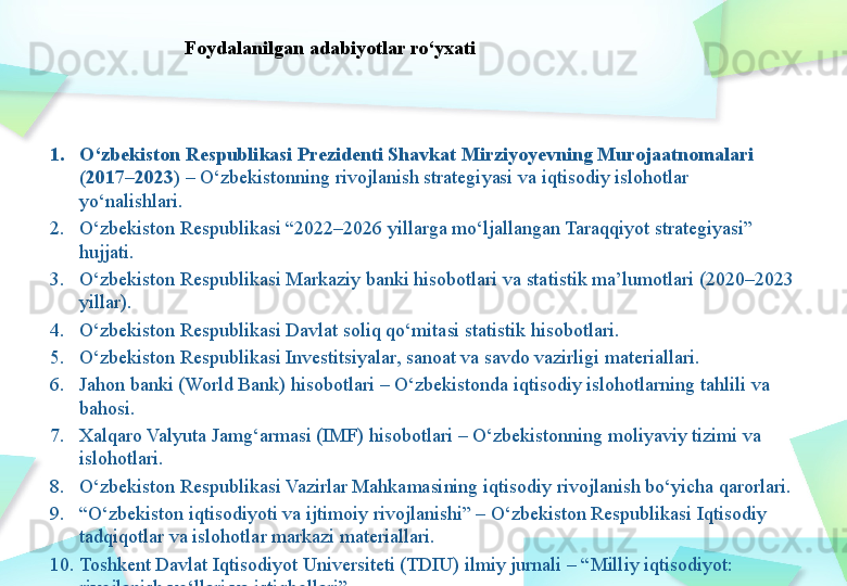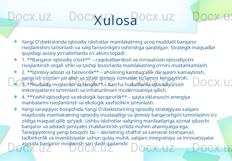 Yangi O‘zbekistonda iqtisodiy islohotlarning strategik maqsadlari va taraqqiyotning yangi bosqichi