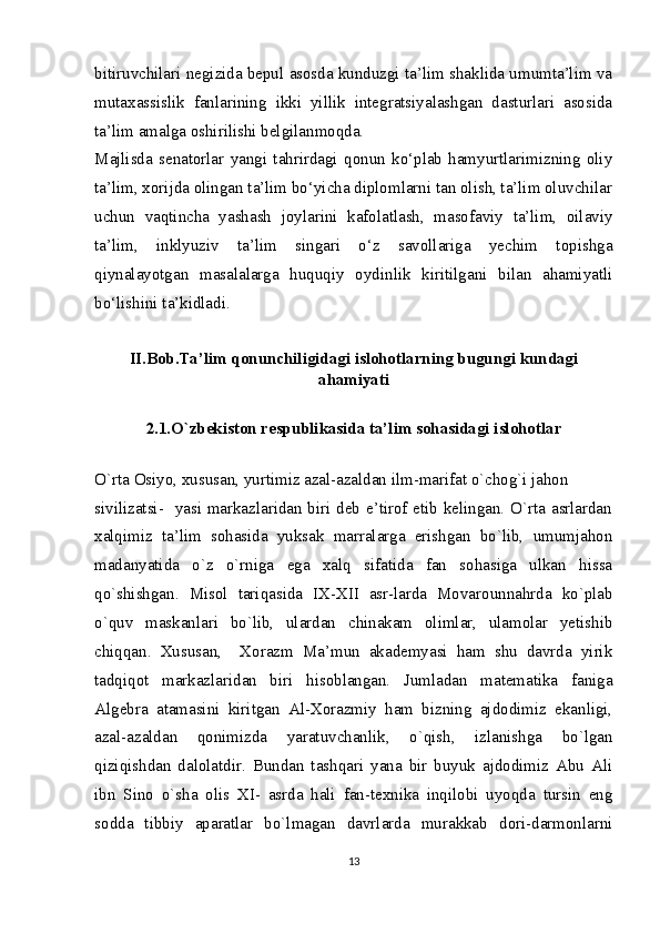 Yangi tahrirdagi “Ta’lim to’g’risida”gi Qonun mohiyati.