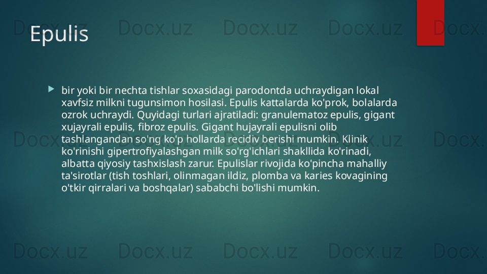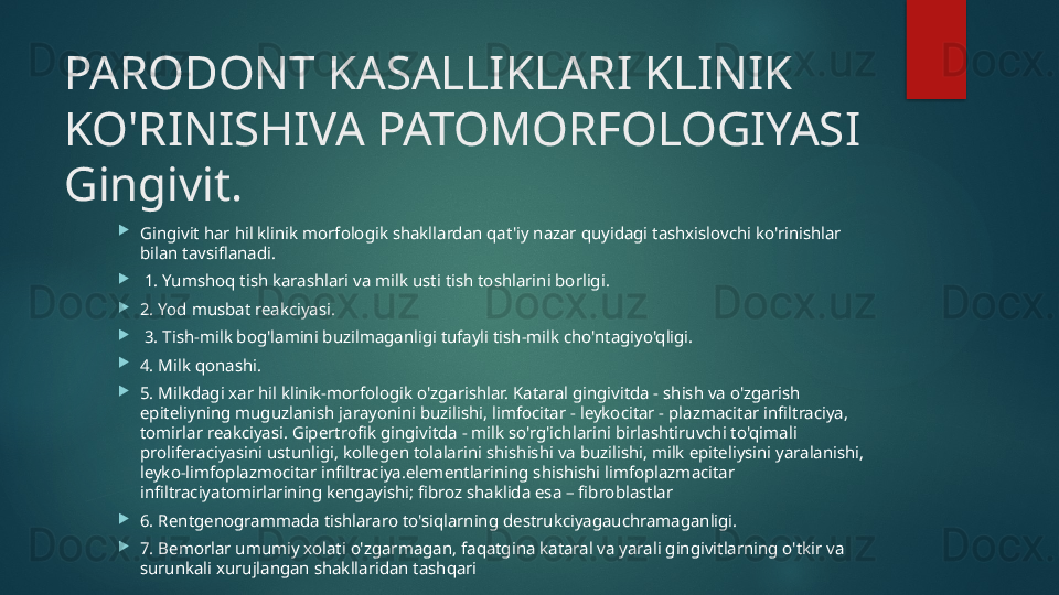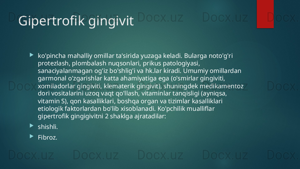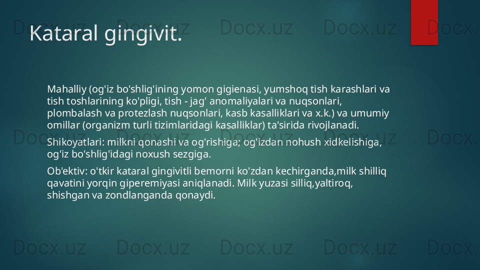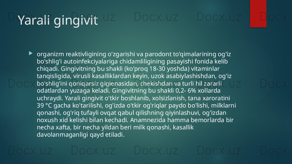 Yarali gingivit. Klinikasi, qiyosiy tashxisi, davolash,profilaktikasi