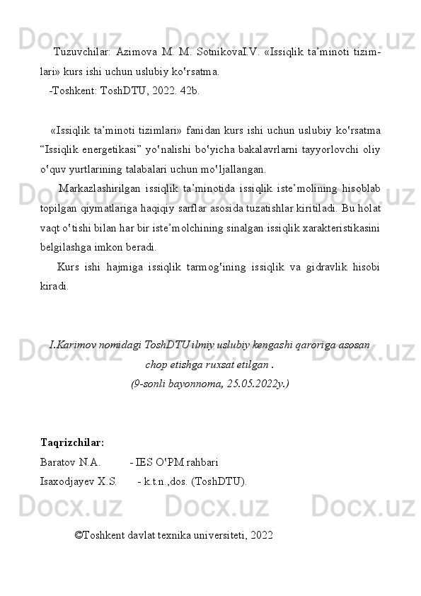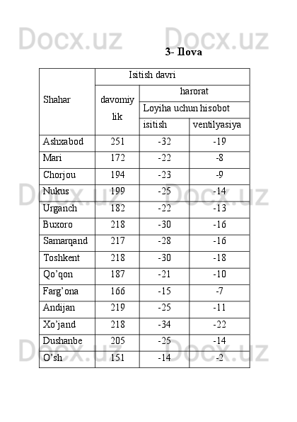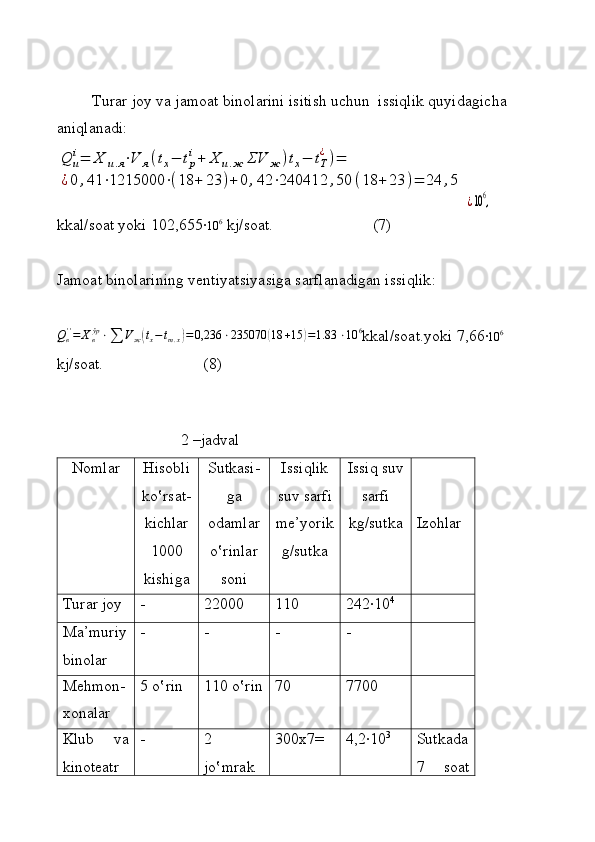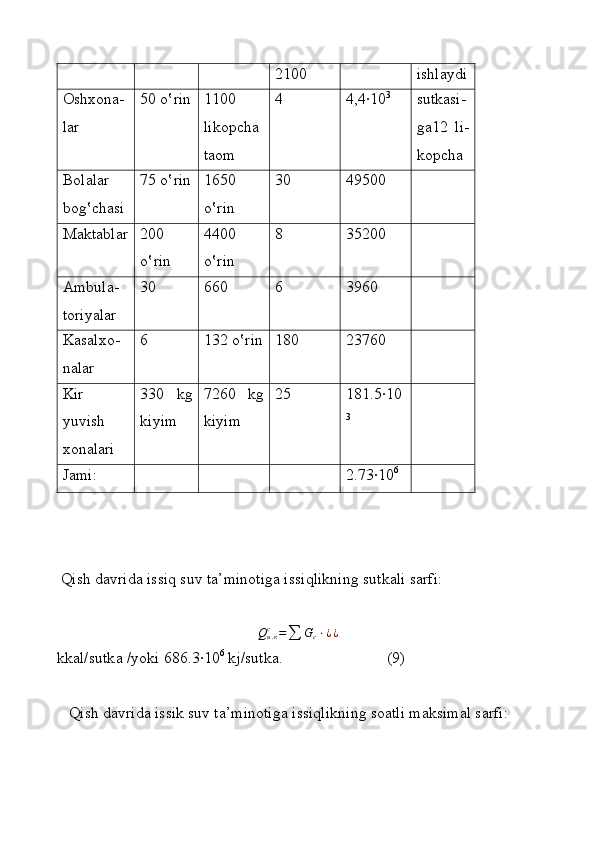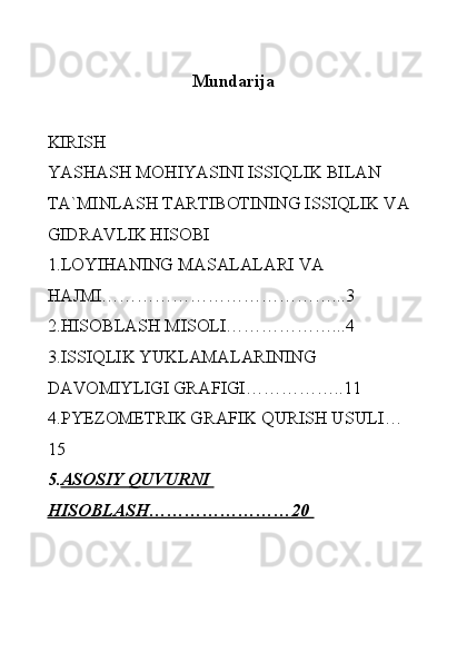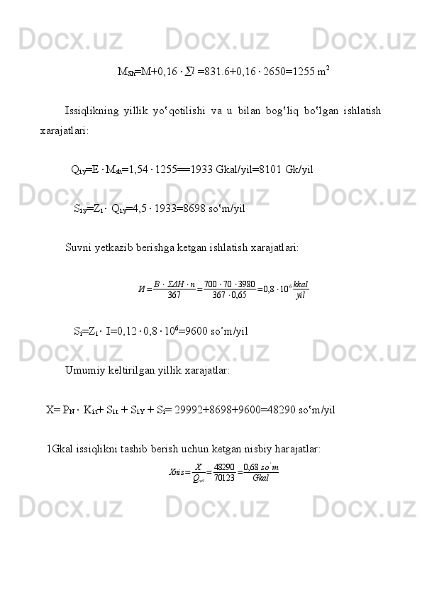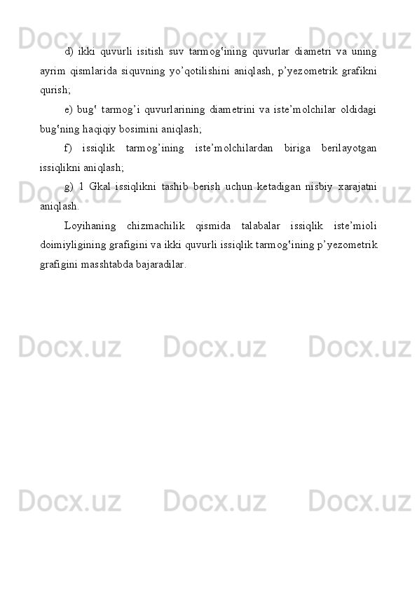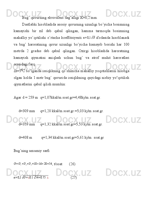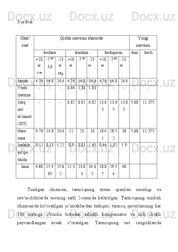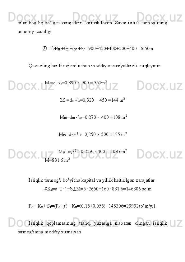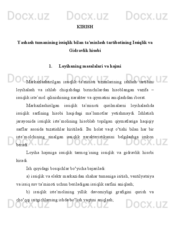 Yashаsh tumanining issiqlik bilаn tа’minlаsh tаrtibоtining Issiqlik vа Gidrаvlik hisоbi