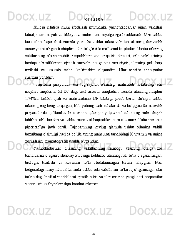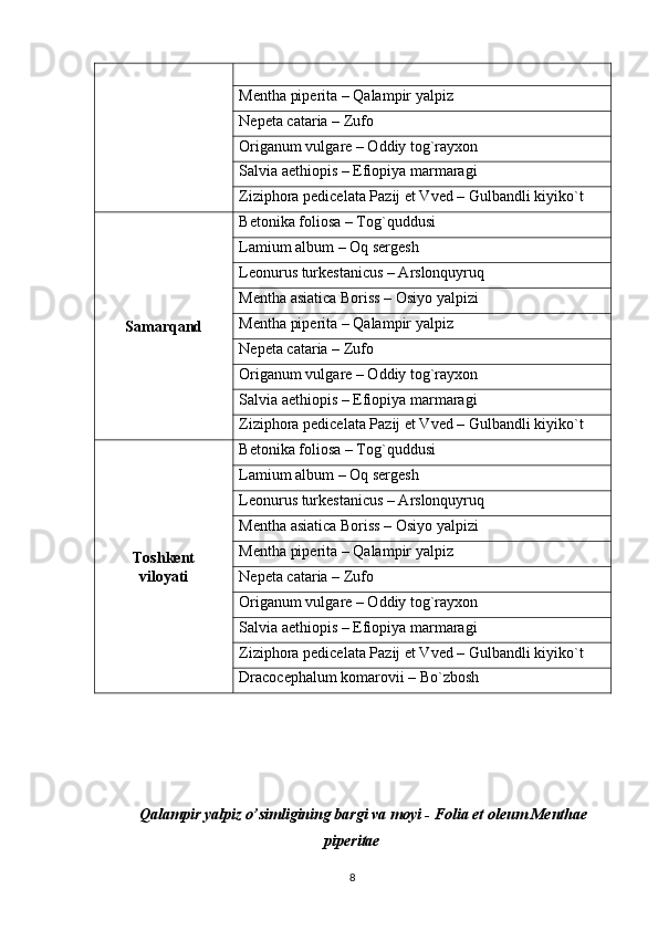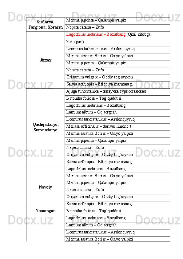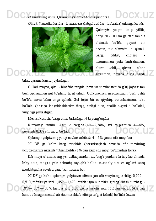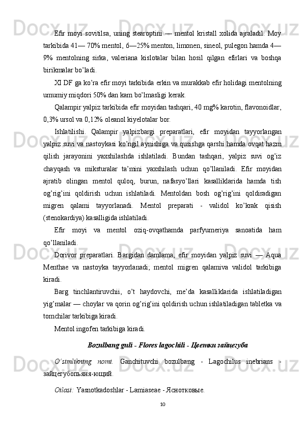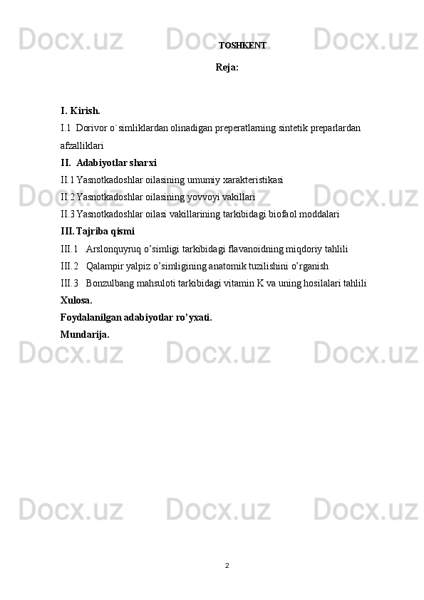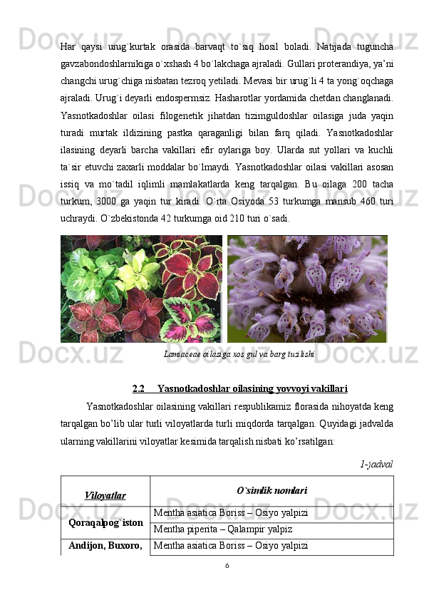 Yasnotkadoshlarning yovvoyi holda o’sadigan dorivor vakillari