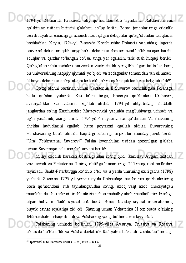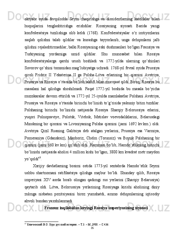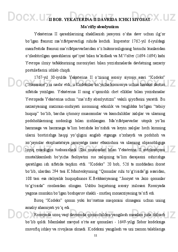 Yekaterina II davrida Rossiya tarixi
