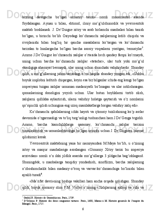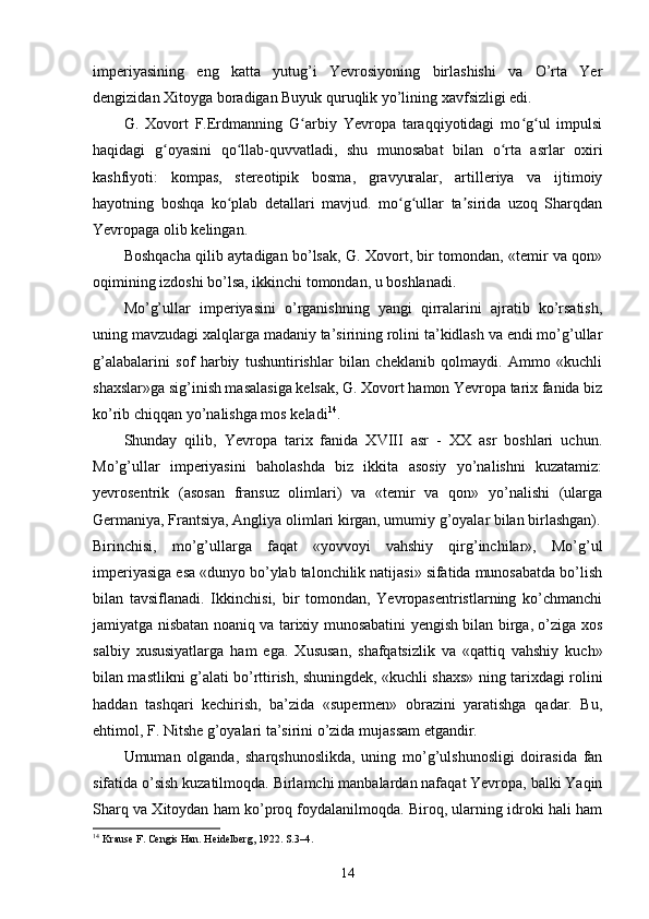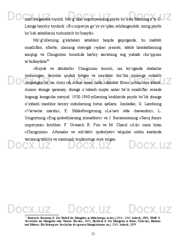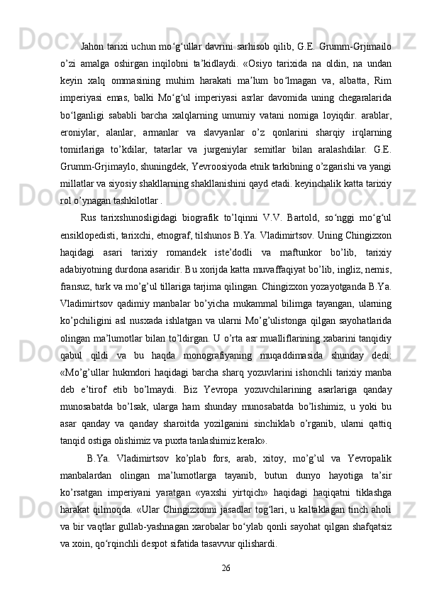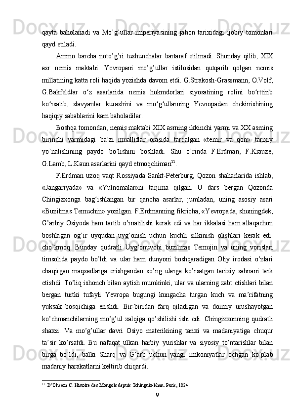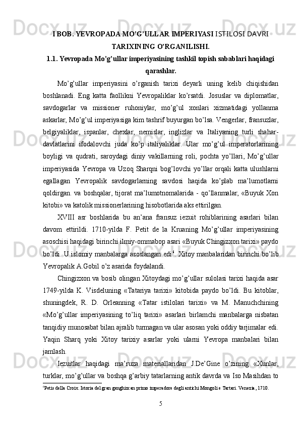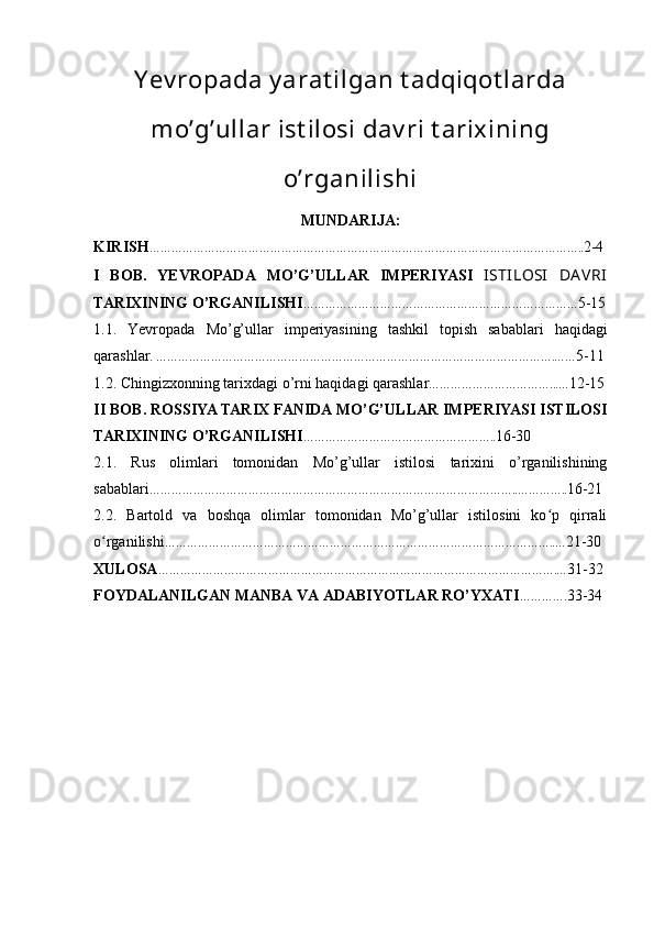 Yevropada yaratilgan tadqiqotlarda mo’g’ullar istilosi davri tarixining o’rganilishi