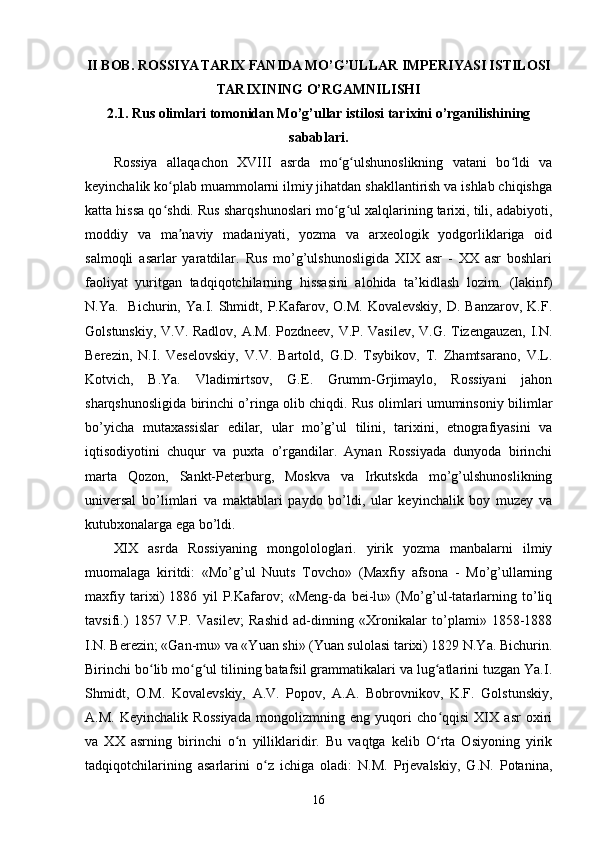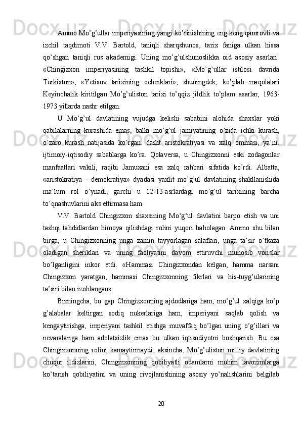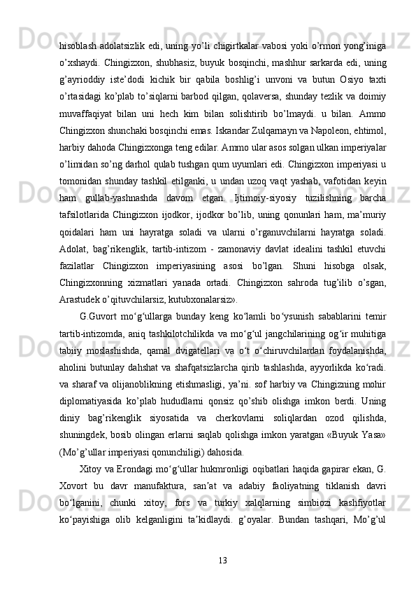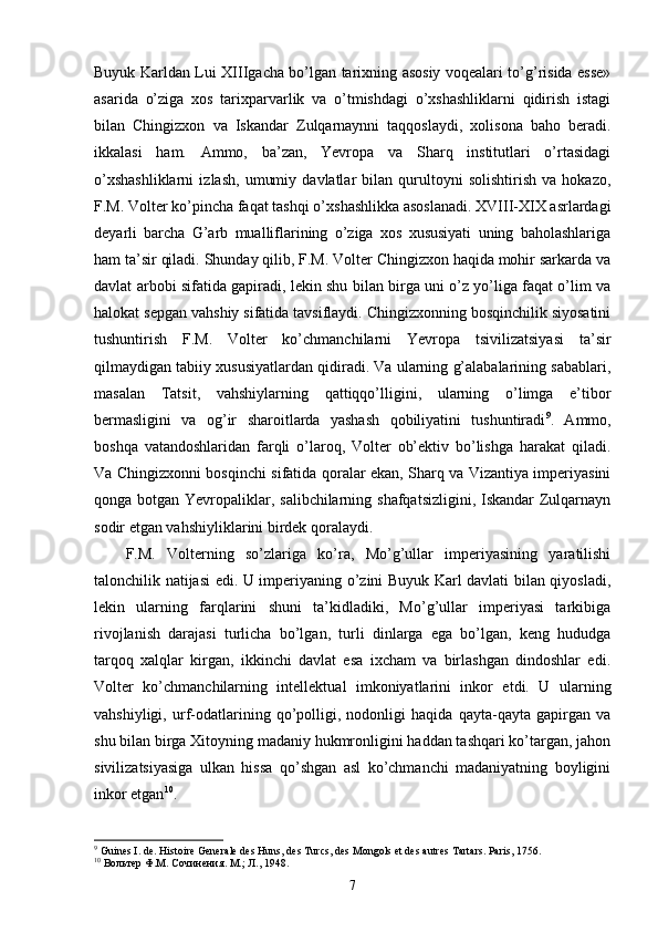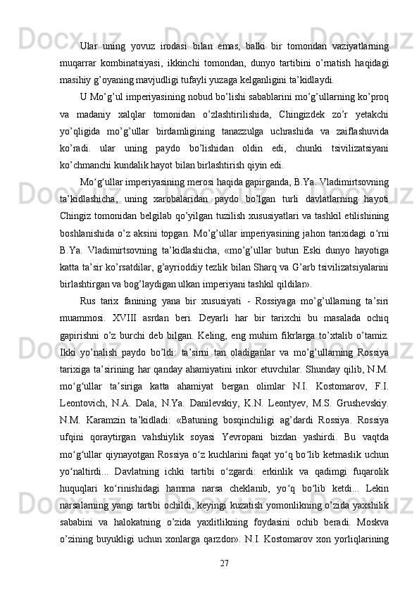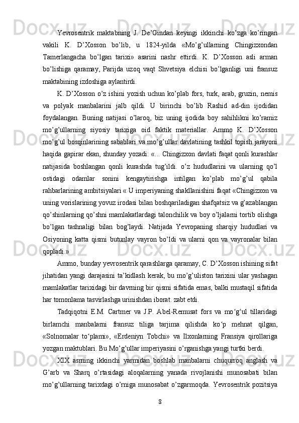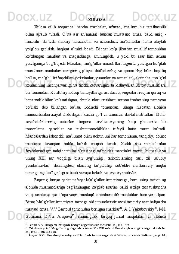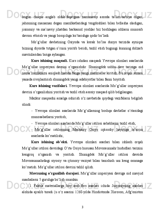 Yevropada yaratilgan tadqiqotlarda mo’g’ullar istilosi davri tarixining o’rganilishi