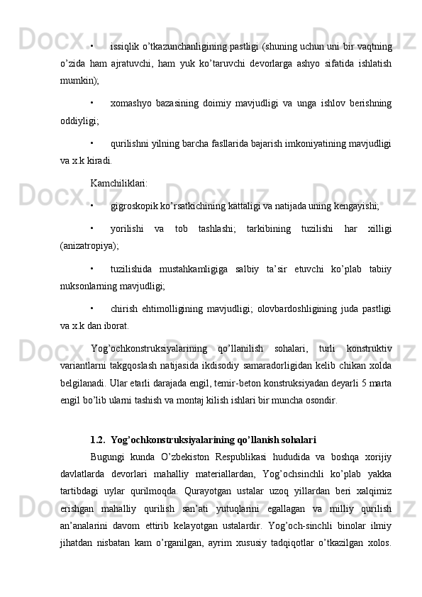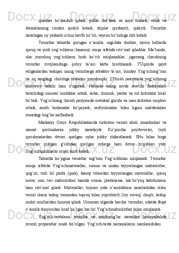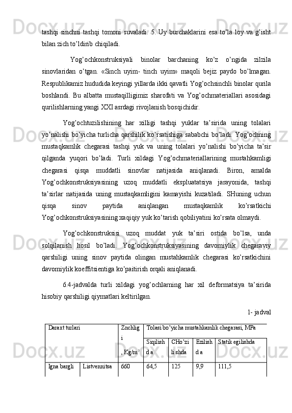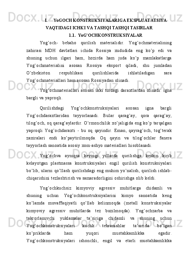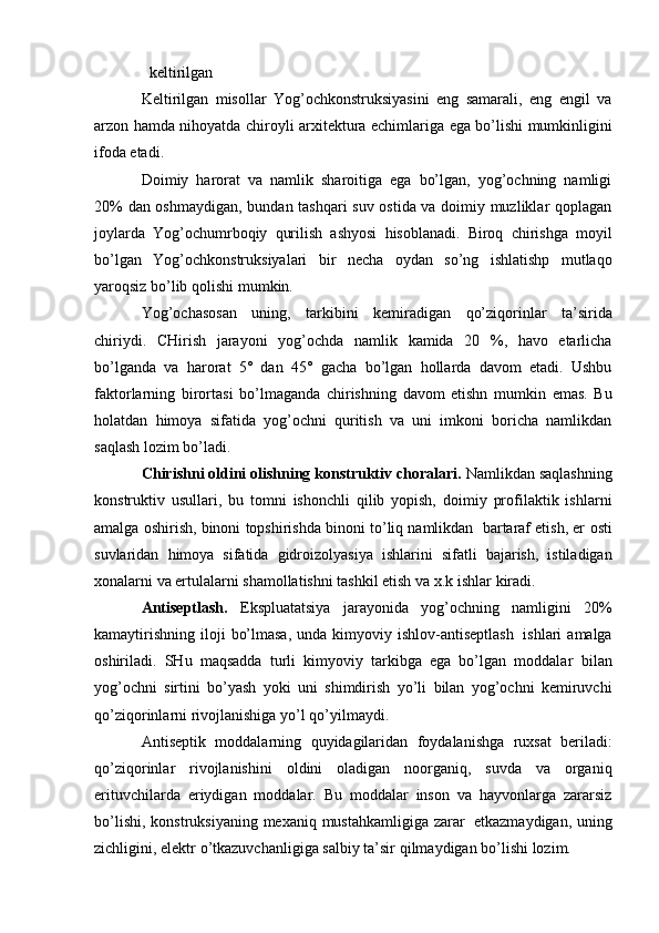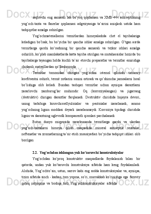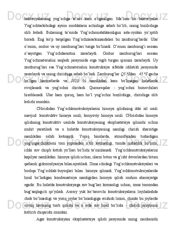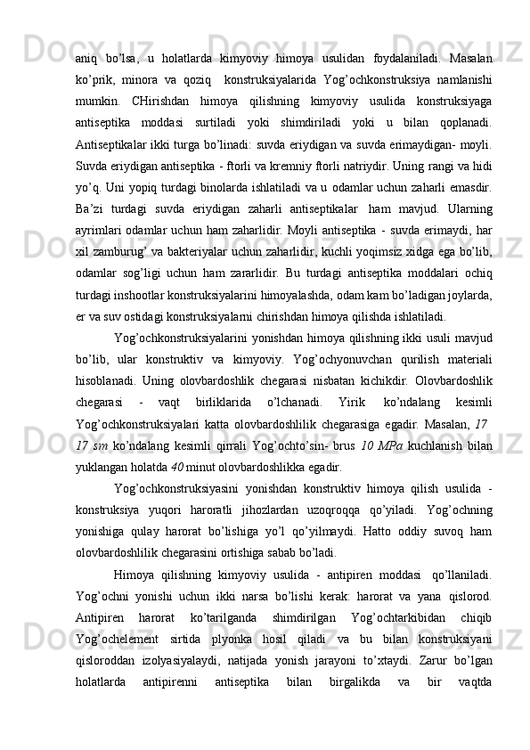 Yog'och konstruksiyalariga ekplatatsiya vaqtidagi ichki va tashqi ta'sirlariga qaratilgan chora-tadbirlar
