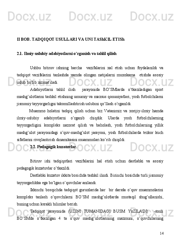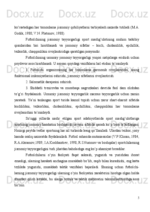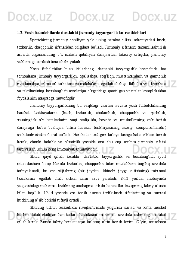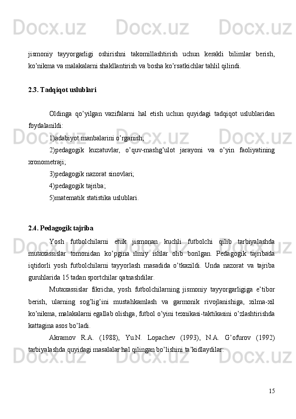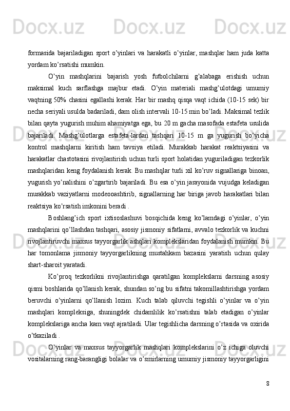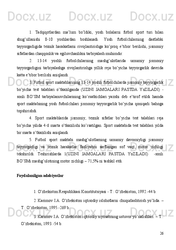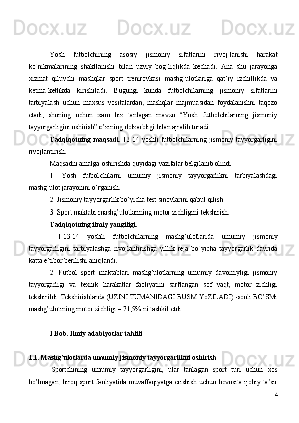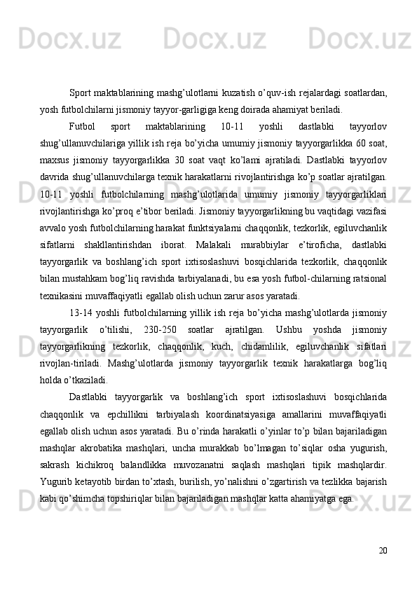 Yosh futbolchilarni tanlab olishning o’ziga xos xususiyatlar