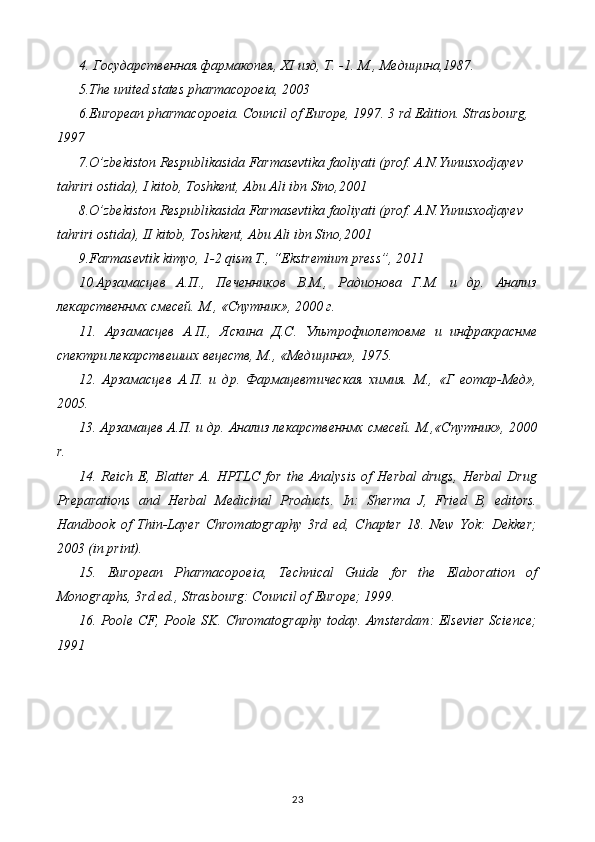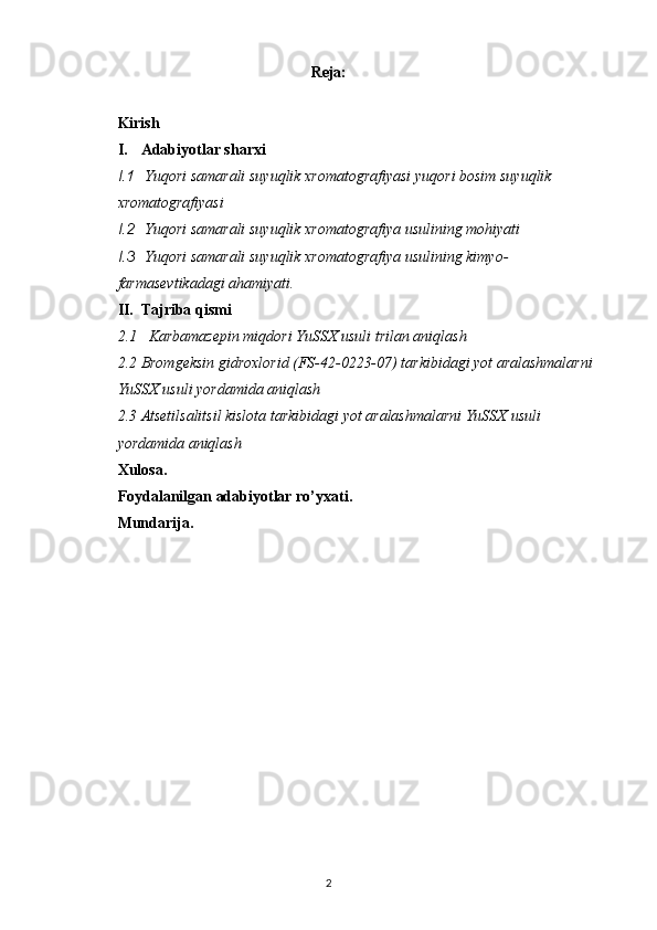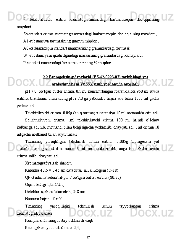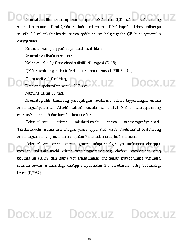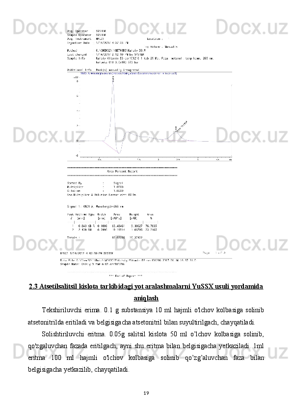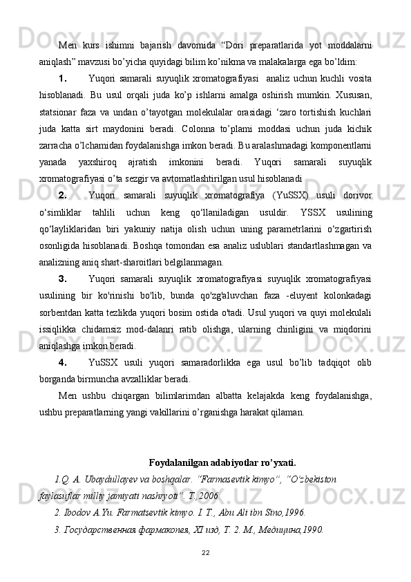 Yot moddalarni yuqori samarali suyuqlik xromatografiyasi usulida aniqlash preparatlar tahlili
