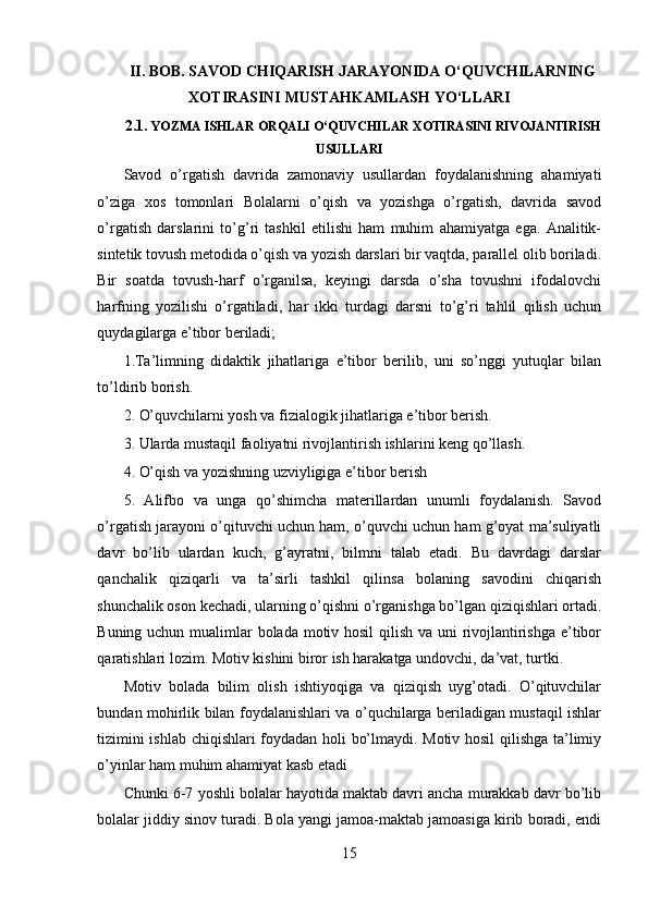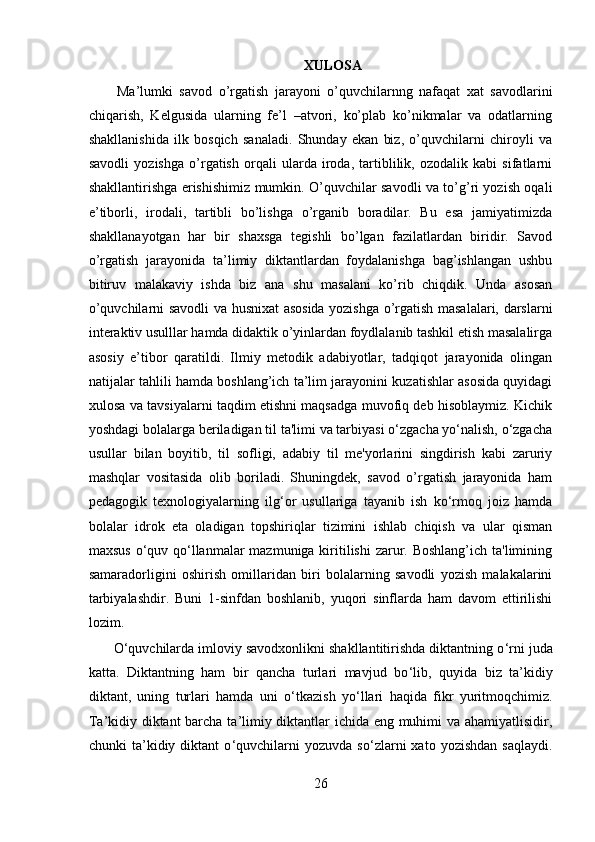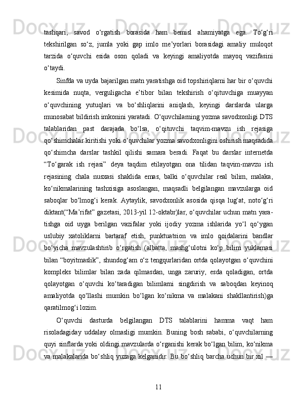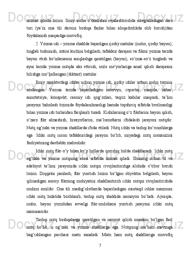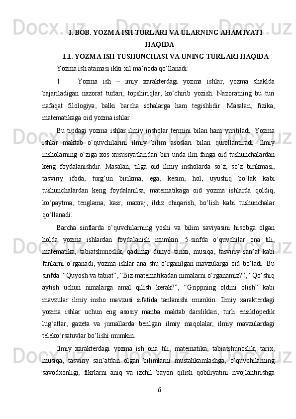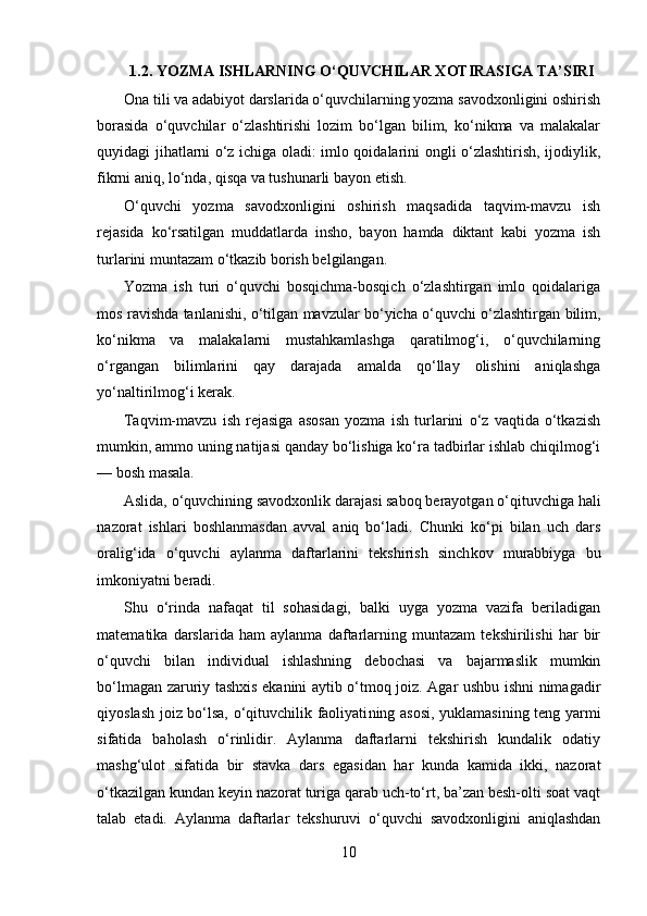 Yozma ishlar – o’quvchilar tafakkurini rivojlantiruvchi vosita